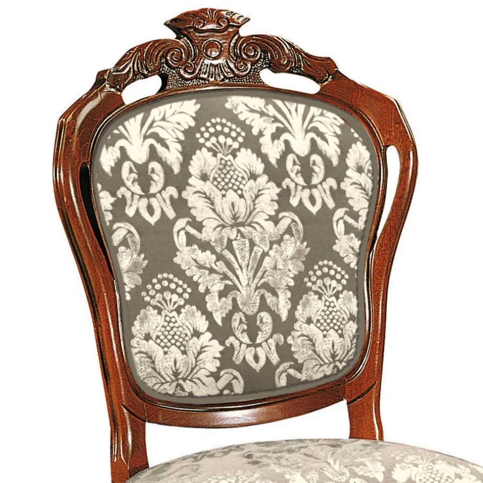 Besondere Aufmerksamkeit zieht die hohe Rückenlehne auf sich, die in dekorativer Medaillonform gestaltet ist. Diese ergonomisch durchdachte Form stützt den Rücken auf angenehme Weise und bringt gleichzeitig eine anmutige Silhouette ins Spiel. Feine Schnitzereien entlang der Lehne unterstreichen den künstlerischen Anspruch und runden das Design mit einem Hauch traditioneller Handwerkskunst ab.