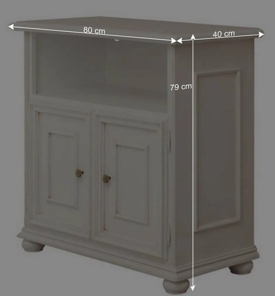 Mit den Maßen von 80 cm Breite, 79 cm Höhe und 40 cm Tiefe passt die Fernsehkommode „Vicina“ perfekt in verschiedene Wohnräume, ohne viel Platz zu beanspruchen. Jede Kommode ist ein Unikat, da es durch die handwerkliche Fertigung zu leichten Maßabweichungen kommen kann. Diese Abweichungen entstehen durch die natürliche Beschaffenheit des Holzes und die manuelle Verarbeitung, wodurch jedes Stück seine eigene, unverwechselbare Identität erhält. Mit einem Gewicht von ca. 22,5 kg ist die Kommode robust und dennoch leicht genug, um flexibel in Ihrem Raum arrangiert zu werden.
