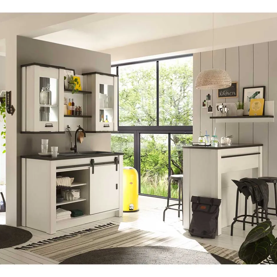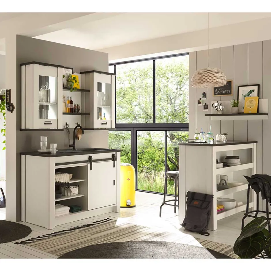 - Wohnliche Küchenmöbel in Pinie Weiß und Antrazit