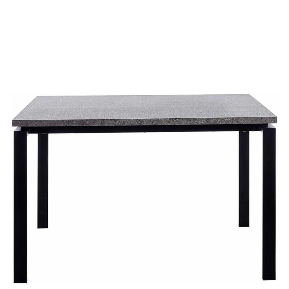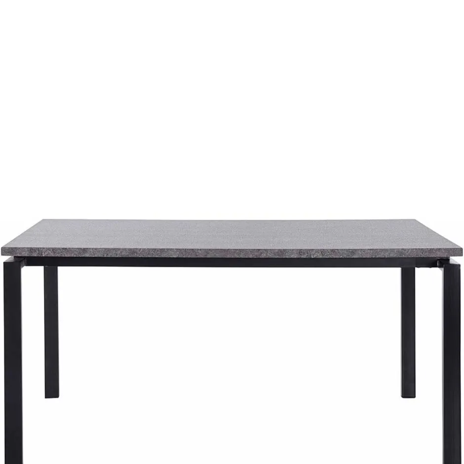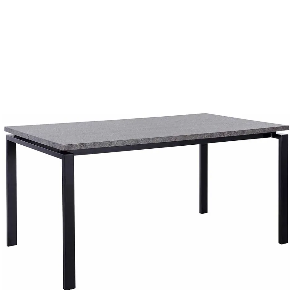 Die Tischplatte besteht aus hochwertigem MDF-Holzwerkstoff, der mit einer robusten Folie in authentischer Betonoptik versehen ist. Das stabile Fußgestell sowie die Zarge sind aus Metall gefertigt und mit einer mattschwarzen Lackierung versehen, die dem Tisch nicht nur Standfestigkeit verleiht, sondern auch für eine edle Optik sorgt. So profitieren Sie von pflegeleichten Oberflächen, die eine unkomplizierte Reinigung ermöglichen.