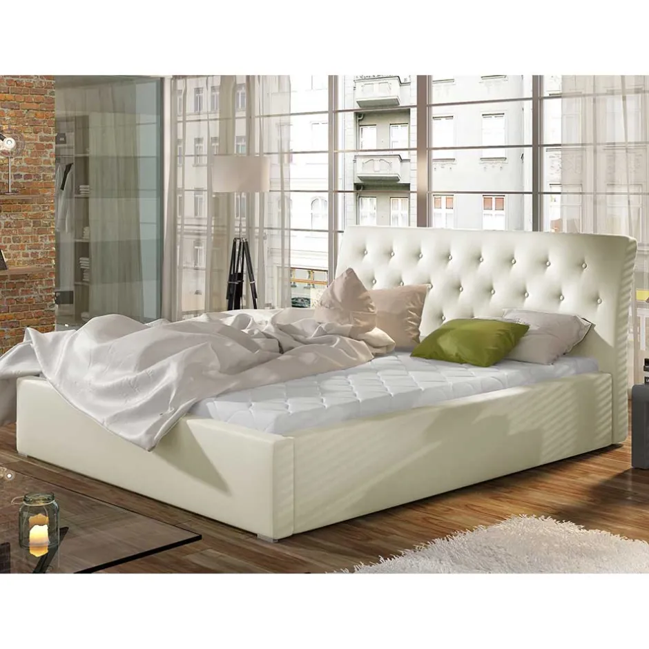 Kunstlederbett in Cremeweiß – Rongon^Wohnen Hot