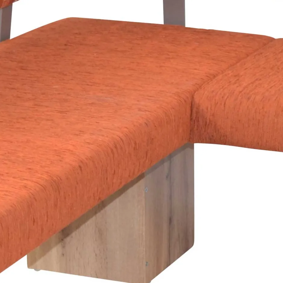 Willkommen in Ihrem neuen Lieblingsplatz! Die L-Form Eckbank „Cheze“ ist nicht nur ein Möbelstück, sondern eine Oase der Gemütlichkeit. Mit ihrer warmen orangefarbenen Polsterung und dem natürlichen Eichenholz wirkt sie einladend und modern zugleich.
