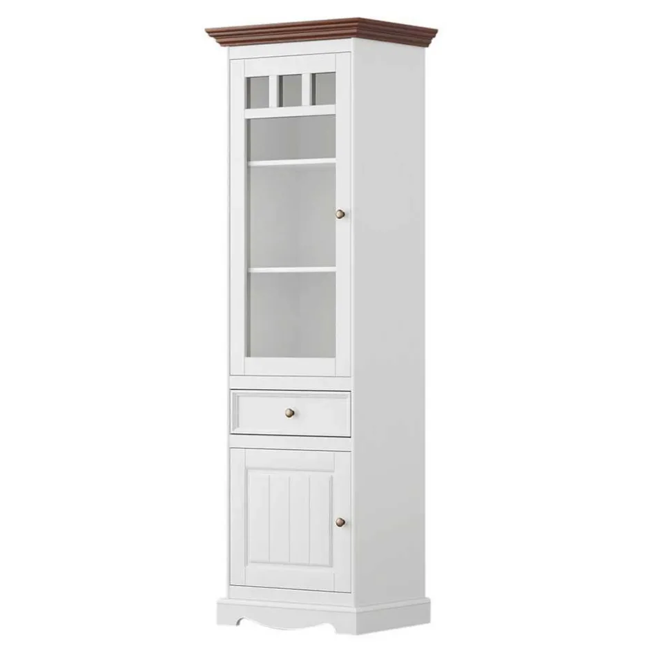 Landhaus Vitrine in Weiß mit Nussbaum Braun – Manipur^Wohnen Online