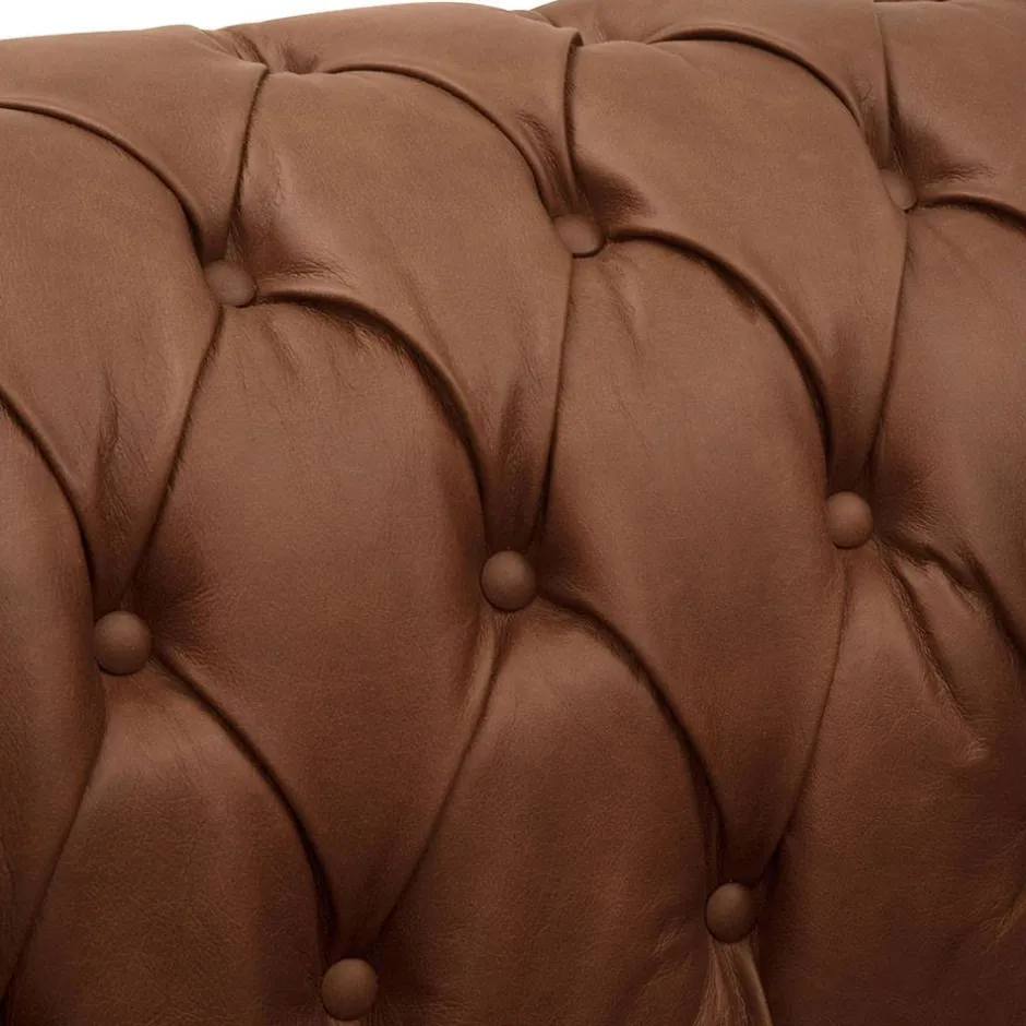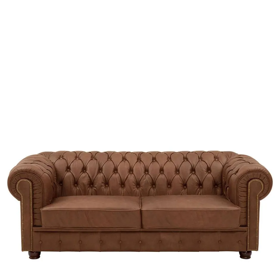 Der Chesterfield Look ist ein Symbol für klassische Eleganz und zeitlose Schönheit. Mit seinen präzise gestalteten tiefen Steppungen und den kunstvoll angebrachten Ziernägeln und Zierknöpfen strahlt die Polstergarnitur „Gonron“ eine königliche Aura aus, die jedes Wohnzimmer in eine luxuriöse Lounge verwandelt. Die liebevoll geschwungenen Armlehnen und die dekorativ gedrechselten Fußgestelle aus lackiertem Buchenmassivholz in edlem Nussbaumton verleihen diesem Möbelstück eine zusätzliche Note von Raffinesse und Stil.