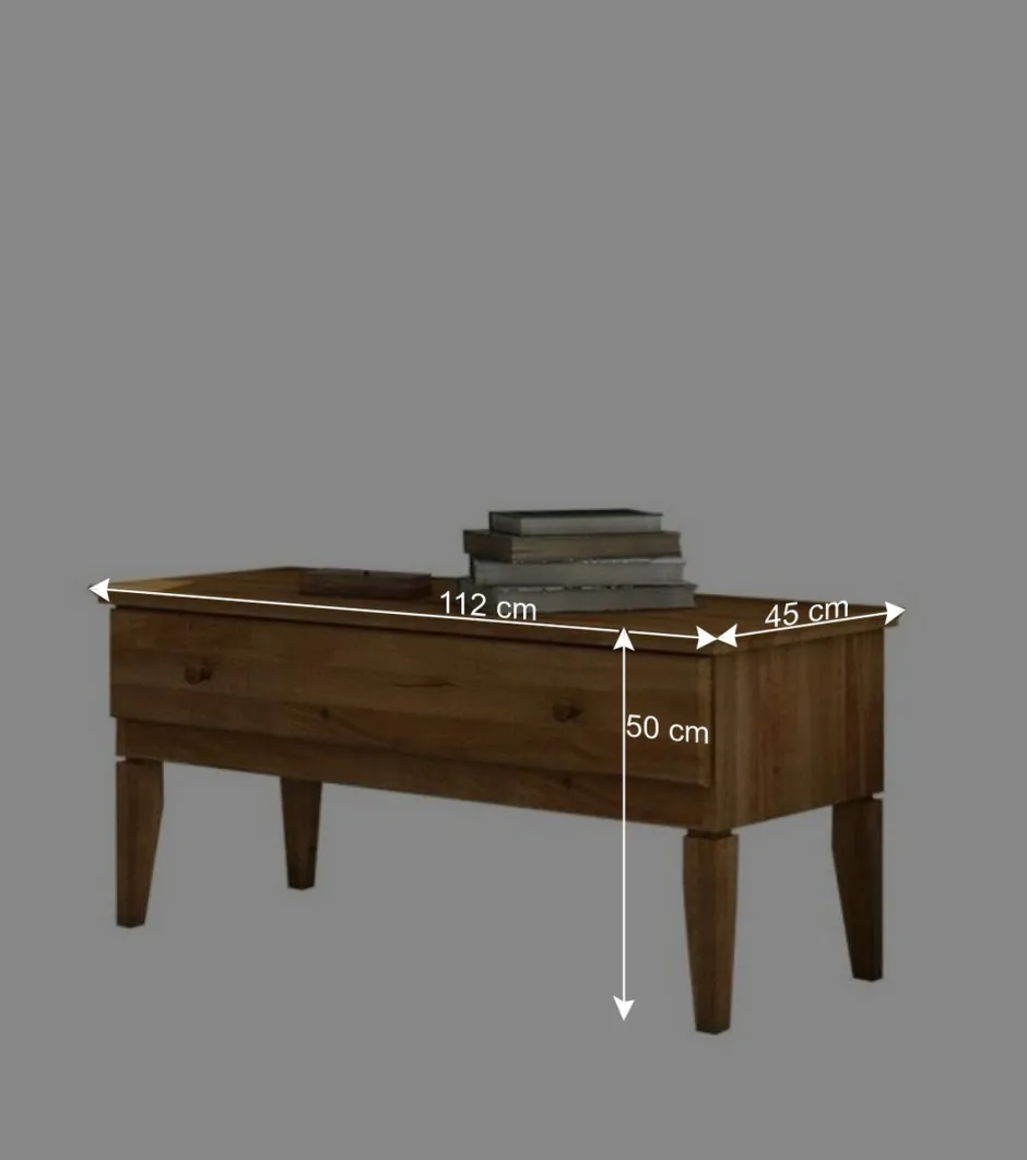 Ausgestattet mit einer Schublade, die dank des Metallauszugs und der Soft-Close-Funktion geräuschlos und leicht schließt, bietet „Masdamos“ eine praktische und komfortable Bedienung. Die dezente Höhe der Schublade von ca. 10 cm ist ideal für die Aufbewahrung Ihrer wertvollen Gegenstände.