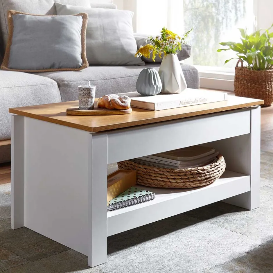 - Praktischer Couchtisch in Weiß und Eichefarben