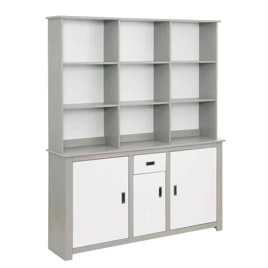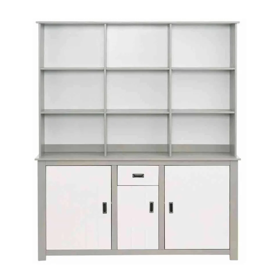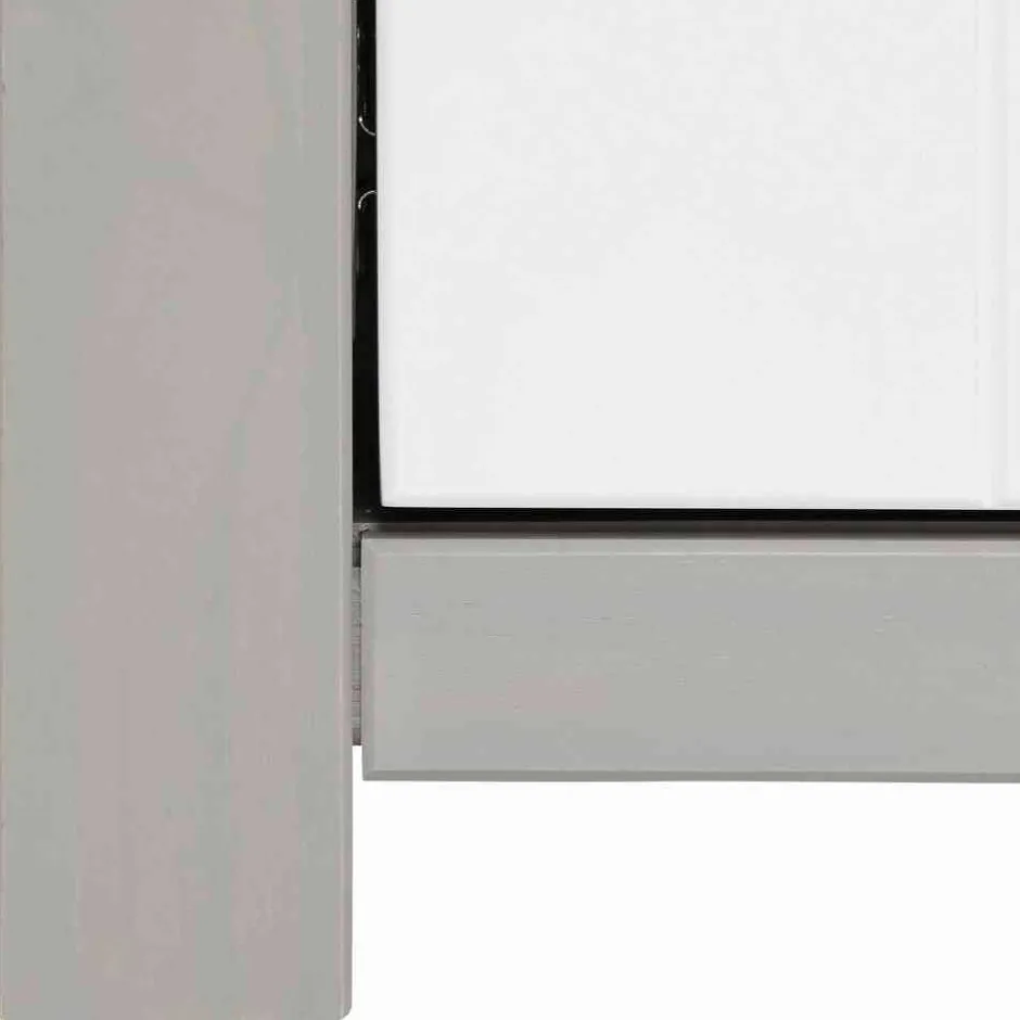 Die elegante Lackierung in Weiß und Grau verleiht dem Schrank eine moderne Leichtigkeit, die perfekt zu zeitgemäßen Wohnstilen passt. Der hochwertige Lack schützt das Holz zuverlässig vor Abnutzung und macht die Pflege zum Kinderspiel. Ihr Buffetschrank behält dauerhaft seine strahlende Schönheit – Tag für Tag, Jahr für Jahr.