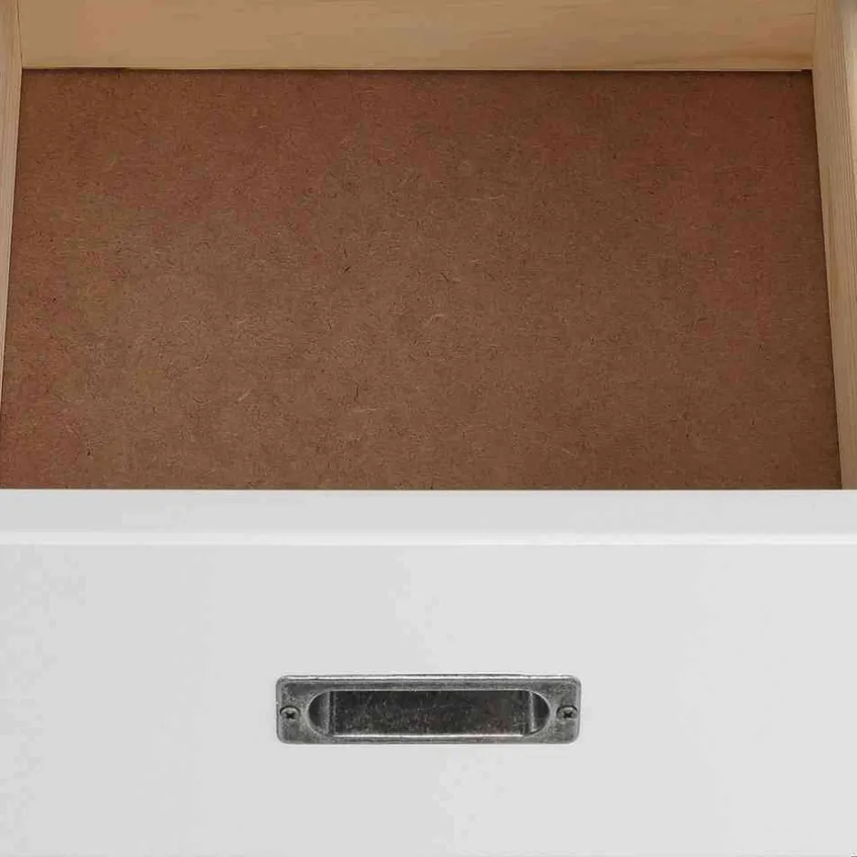 Türfronten mit markanten Längsrillen, dekorative Griffmulden in antiker Optik und eine solide Standkonstruktion auf stabilen Wangen: Jeder Blick offenbart liebevoll gestaltete Details, die diesem Schrank seinen unverwechselbaren Charakter verleihen. Ein Möbelstück, das nicht einfach nur praktisch ist, sondern Ihre Wohnräume veredelt.