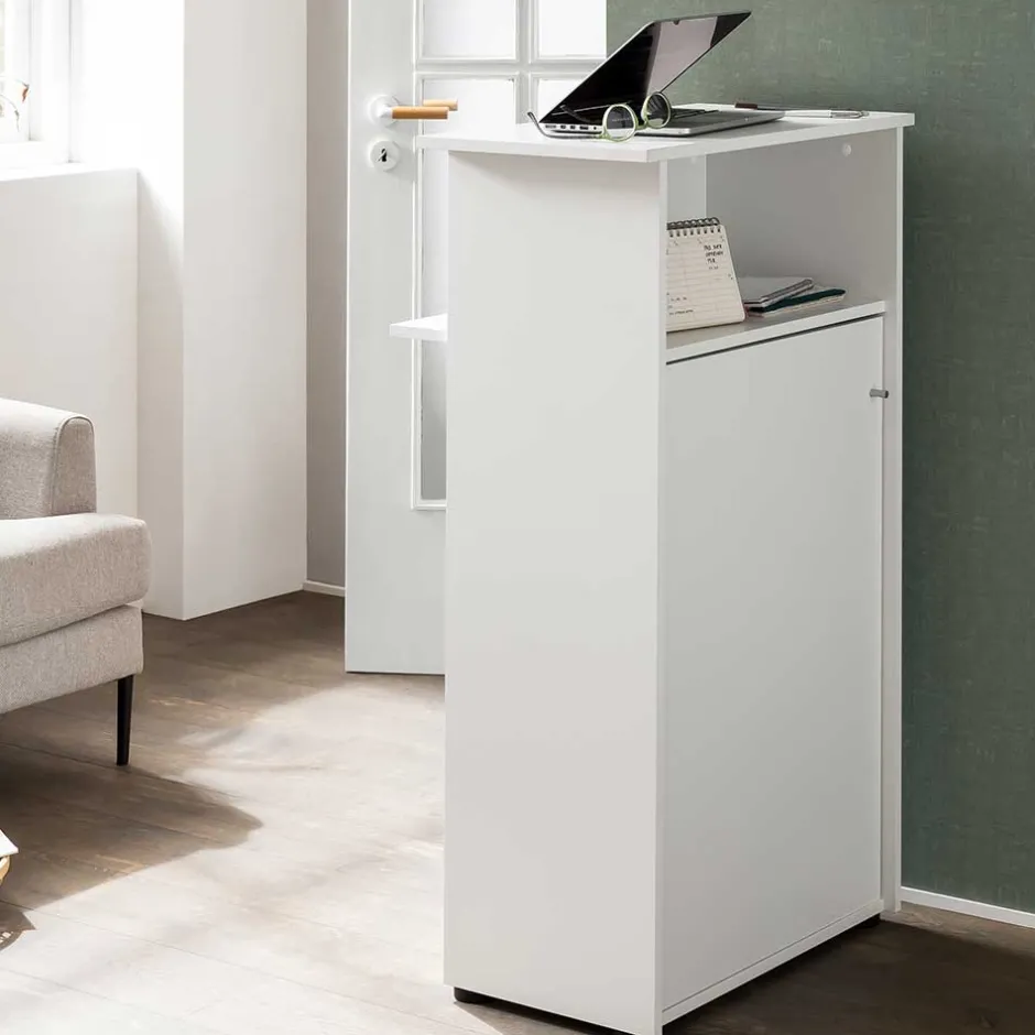 Der Office Tresen „Afrina“ setzt nicht nur funktionale Akzente, sondern auch visuelle Highlights in Ihrem Empfangsbereich. In strahlendem Weiß gehalten, fügt sich dieser Tresen harmonisch in moderne Arbeitsumgebungen ein und schafft ein einladendes, professionelles Ambiente. Ob in kleinen Büros oder größeren Empfangsbereichen – der „Afrina“ ist die ideale Lösung, um Ihren Empfang elegant und zugleich praktisch zu gestalten. Mit seiner klaren Linienführung und seinem zurückhaltenden Design passt dieser Tresen perfekt zu unterschiedlichen Büroeinrichtungen und trägt zur Steigerung Ihrer Effizienz bei.