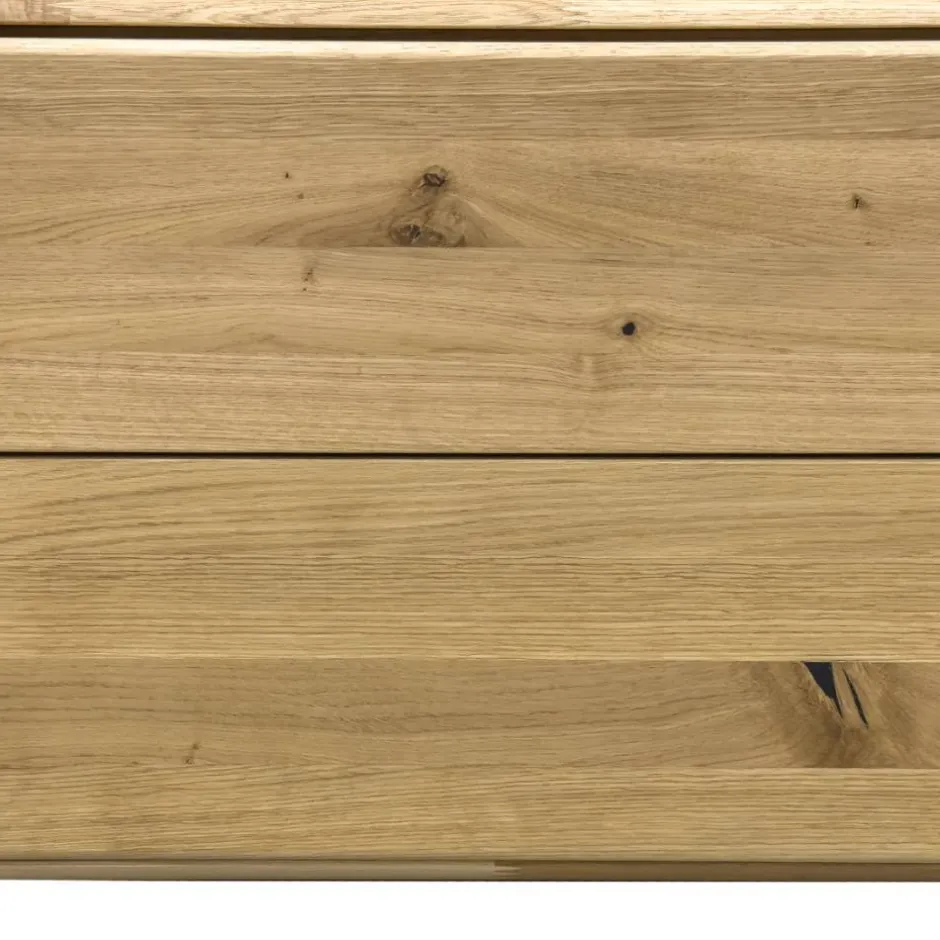 Wildeiche ist mehr als nur Holz – es ist ein Statement für Beständigkeit und Stil. Das robuste Material überzeugt mit seiner hohen Dichte und Härte, was die Nachtkommode Feanor besonders langlebig und widerstandsfähig macht. Gleichzeitig strahlt es Wärme und Ruhe aus. Jeder Griff über die samtig geölte Oberfläche ist ein Erlebnis: weich, angenehm und dennoch kraftvoll – ein spürbares Zeichen echter Handwerkskunst. Die natürliche Maserung variiert von Stück zu Stück und macht jede Kommode zu einem persönlichen Einzelstück mit Seele.