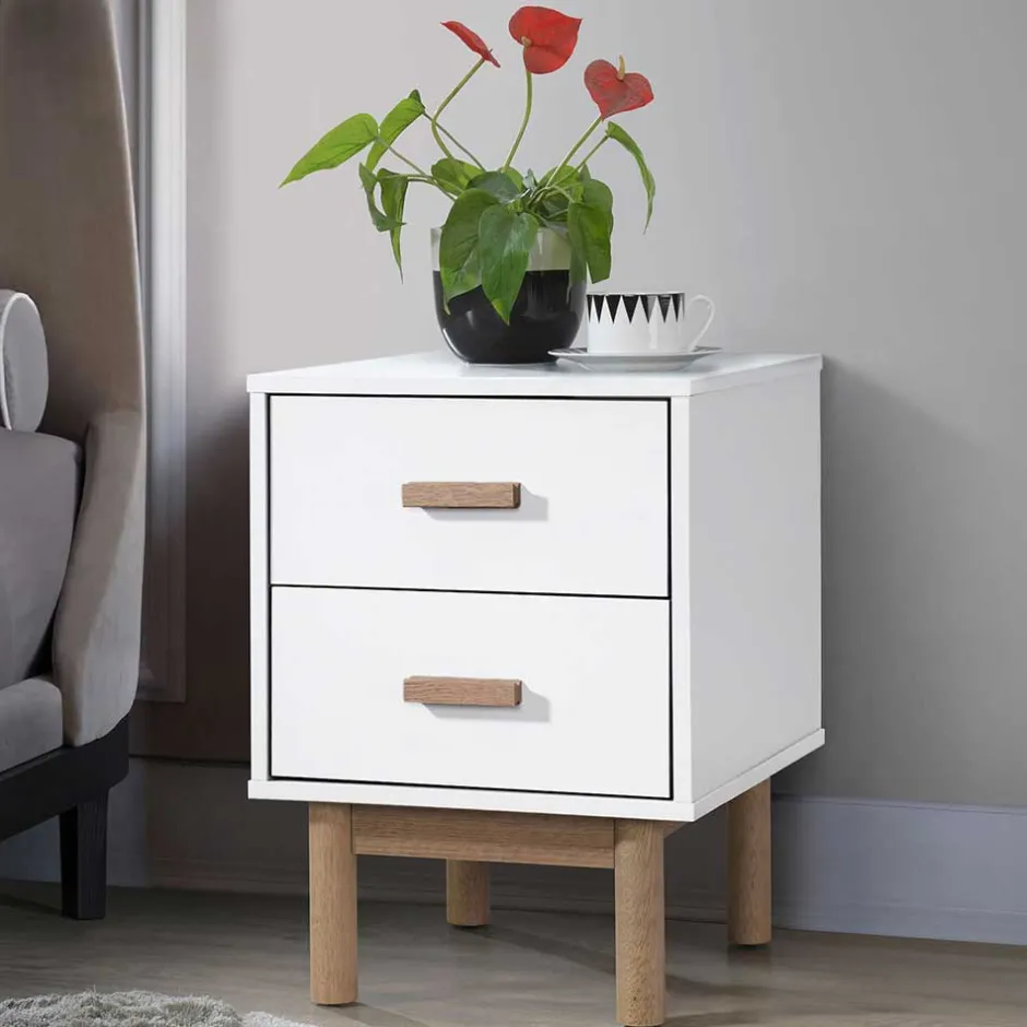 - Zeitlose Nachtkommode in Weiß und Eichefarben