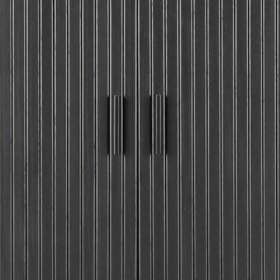 Mit einer Breite von 100 cm, einer Höhe von 118 cm und einer Tiefe von 40 cm bietet das Highboard großzügigen Stauraum, ohne den Raum zu dominieren. Hinter den kunstvoll in Lamellenoptik gestalteten Schiebetüren offenbart sich ein durchdachtes Innenleben mit sechs Fächern und vier stabilen Einlegeböden. Ganz gleich, ob Geschirr, Gläser, Dokumente oder persönliche Schätze – alles findet seinen Platz, gut geschützt und stilvoll inszeniert. Die Metall-Griffleisten in mattem Schwarz setzen dabei ein feines, modernes Detail, das perfekt mit der eleganten Holzoptik harmoniert.
