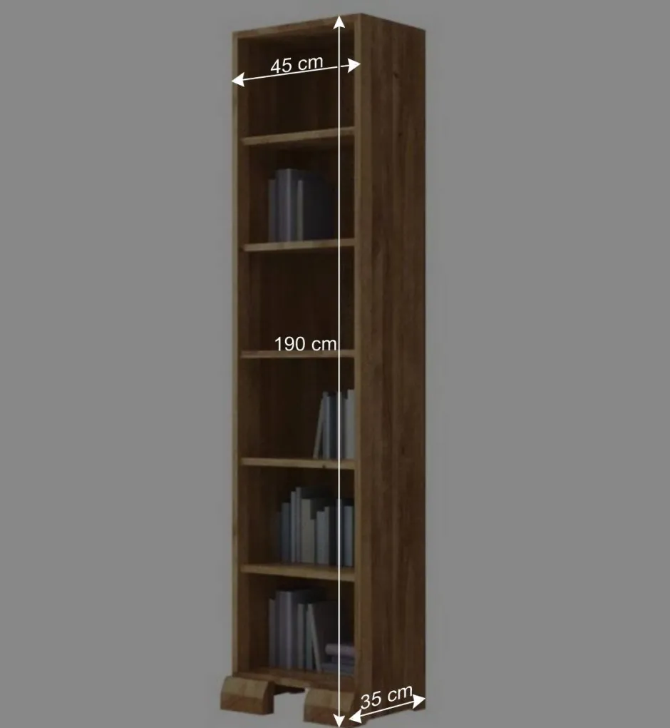 Mit den Maßen 45 cm Breite, 190 cm Höhe und 35 cm Tiefe findet das Regal „Vaskov“ in jedem Raum seinen Platz. Die fünf großzügigen Ablageböden bieten ausreichend Stauraum für Bücher, Dekorationsobjekte und vieles mehr. Die durchgehenden Seitenteile und die stabile Rückwand sorgen für zusätzliche Stabilität und Robustheit. Die Oberplatte hat eine Stärke von 2 cm, was die hochwertige Verarbeitung dieses Möbelstücks unterstreicht.