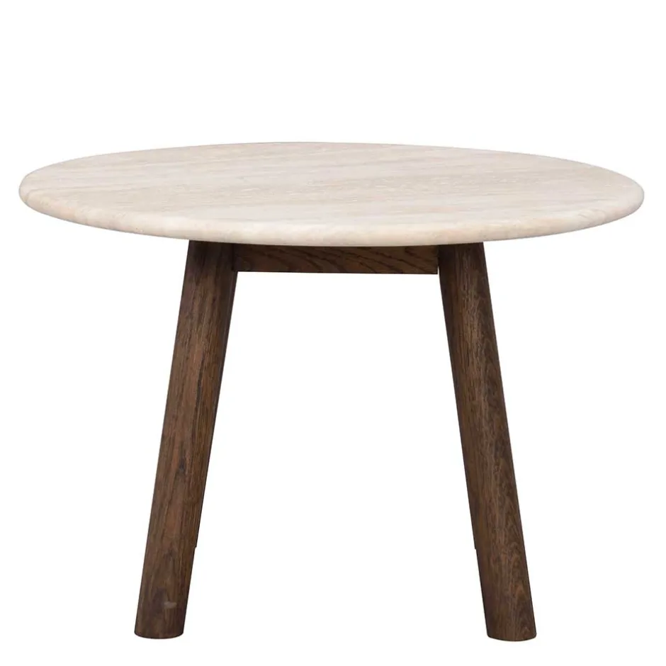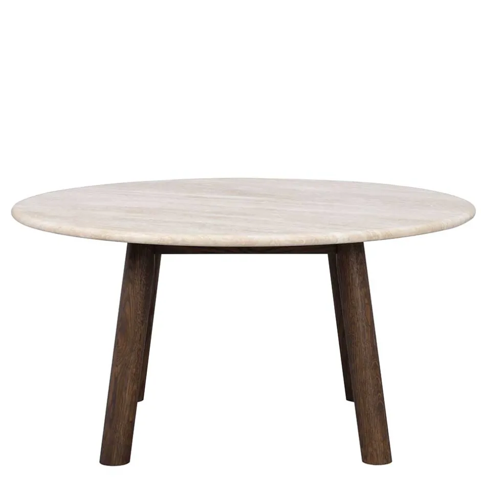 Die Tischplatte des „Cheyenne“ besteht aus hochwertigem, beigefarbenem Travertin Marmor, dessen lebhafte Strukturierung dem Tisch einen unverwechselbaren Charakter verleiht. Travertin ist nicht nur ein Naturstein mit einer faszinierenden Optik, sondern überzeugt auch durch zahlreiche Vorteile: