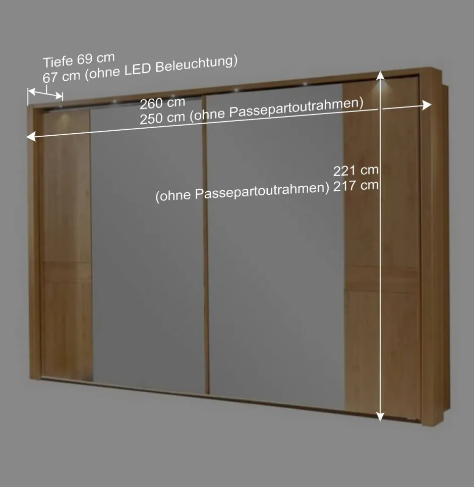 - Maße BxHxT: 250x217x67 cm (ohne Rahmen), Maße BxHxT: 260x221x67 cm (mit Rahmen)