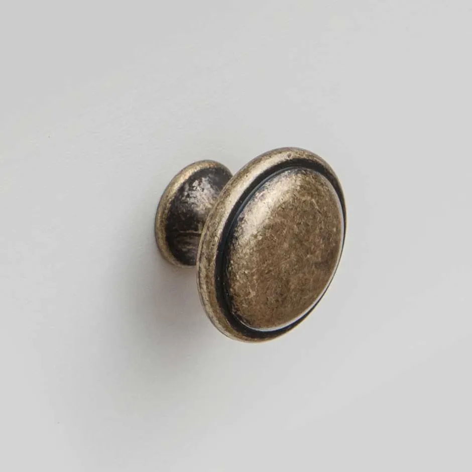 - Runde Metall-Knopfgriffe in Altmessingfarben