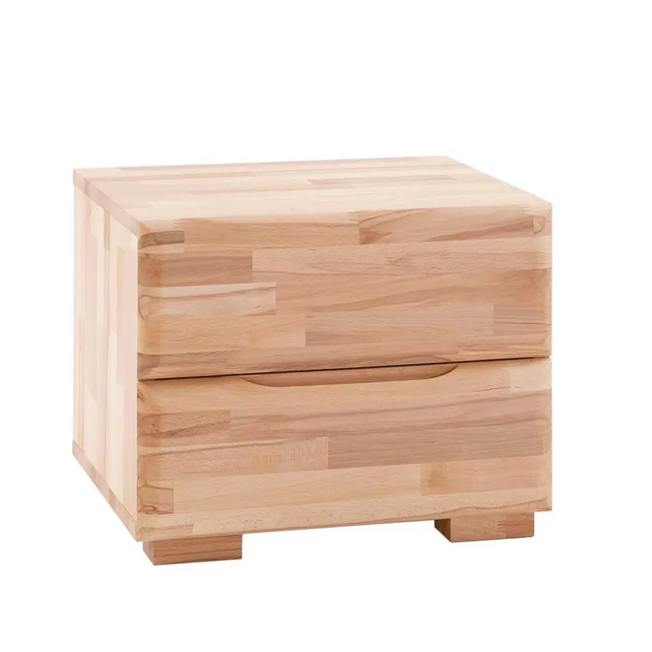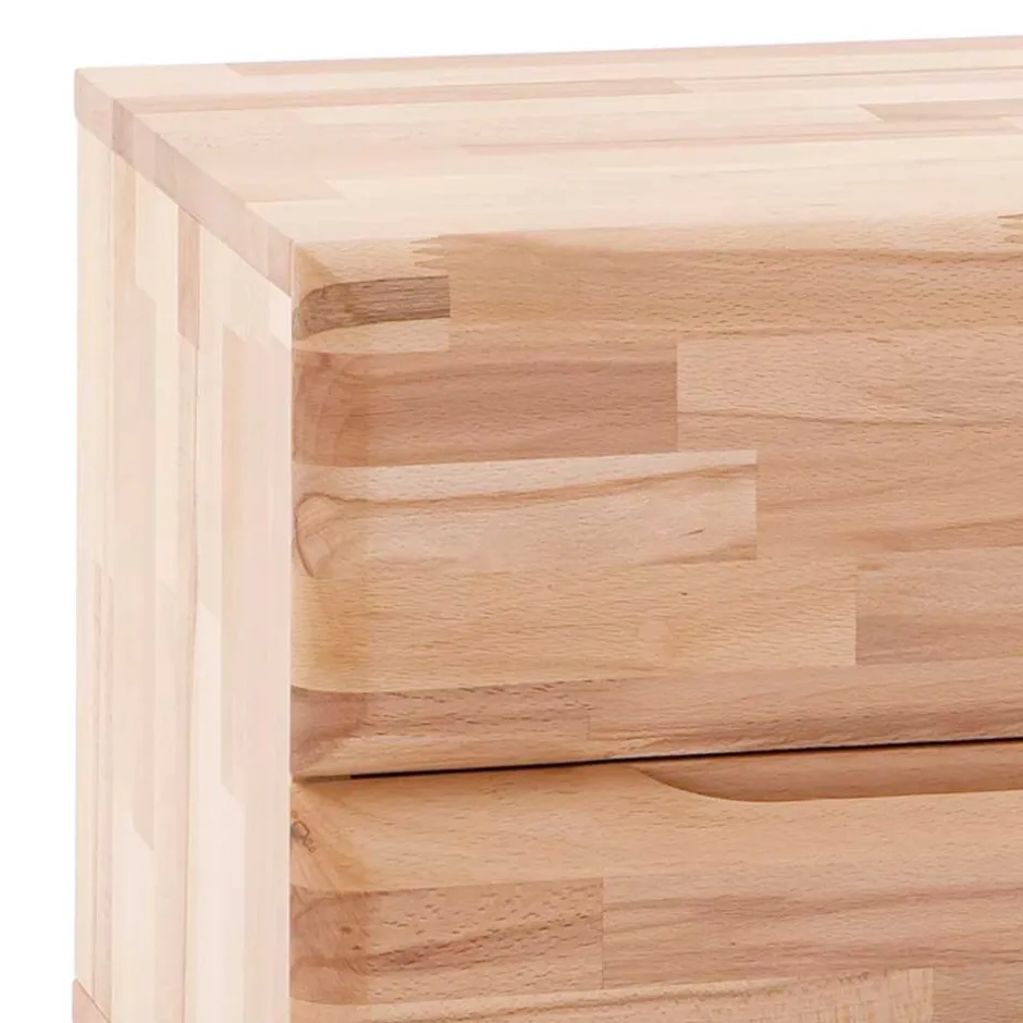 Das Herzstück dieser Konsole ist das massiv verarbeitete Kernbucheholz. Dieses Holz ist für seine ausdrucksstarke Maserung und warmen Farbnuancen bekannt, die Ihrem Schlafraum eine gemütliche und heimelige Atmosphäre verleihen. Darüber hinaus besticht die Kernbuche durch eine hohe Festigkeit und Langlebigkeit.