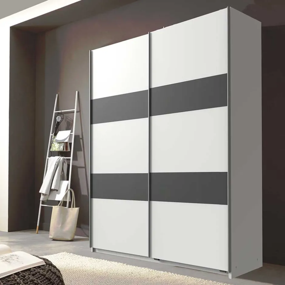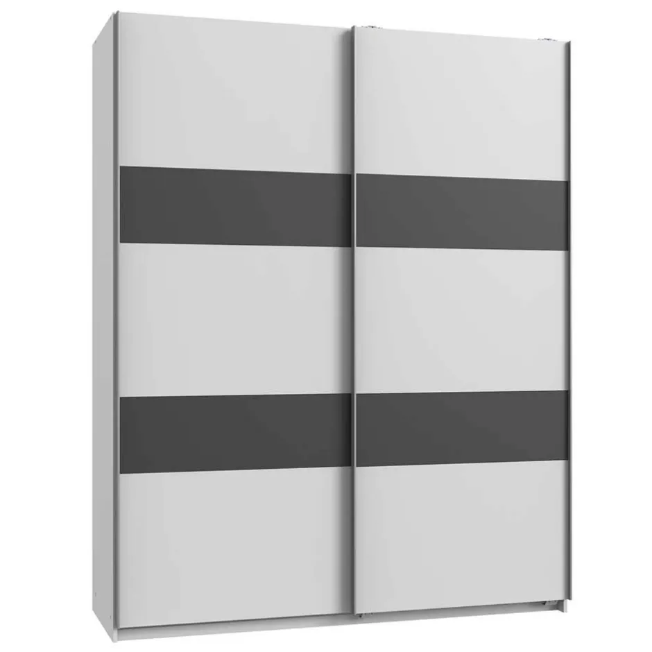 Mit dem Schwebetürenschrank „Malente“ holen Sie sich ein echtes Highlight in Ihr Schlafzimmer. Modernes Design und praktische Funktionen vereinen sich in diesem Möbelstück, das aus deutscher Produktion stammt – ein Garant für höchste Qualität und Langlebigkeit. Die klare Linienführung und die stilvolle Farbkombination aus Weiß und Dunkelgrau verleihen dem Schrank eine zeitlose Eleganz, die sich mühelos in jedes Raumkonzept einfügt.
