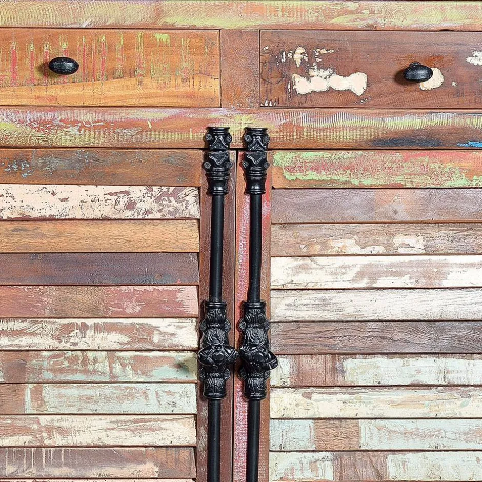 Ein Möbelstück, das mehr erzählt als nur eine Designgeschichte: Das Sideboard „Manna“ ist eine Hommage an den Charme vergangener Zeiten und bringt mit seiner einzigartigen Farbgebung Leben in Ihr Zuhause. Gefertigt aus massivem Altholz, das einst Teil alter Boote und Möbel war, trägt jedes Exemplar seine ganz eigene Handschrift. Unterschiedliche Lackreste und bewusst belassene Gebrauchsspuren verleihen dem Sideboard eine unvergleichliche Patina, die den typischen Shabby Chic-Stil perfekt unterstreicht. Ein echtes Highlight für Liebhaber individueller Möbel!