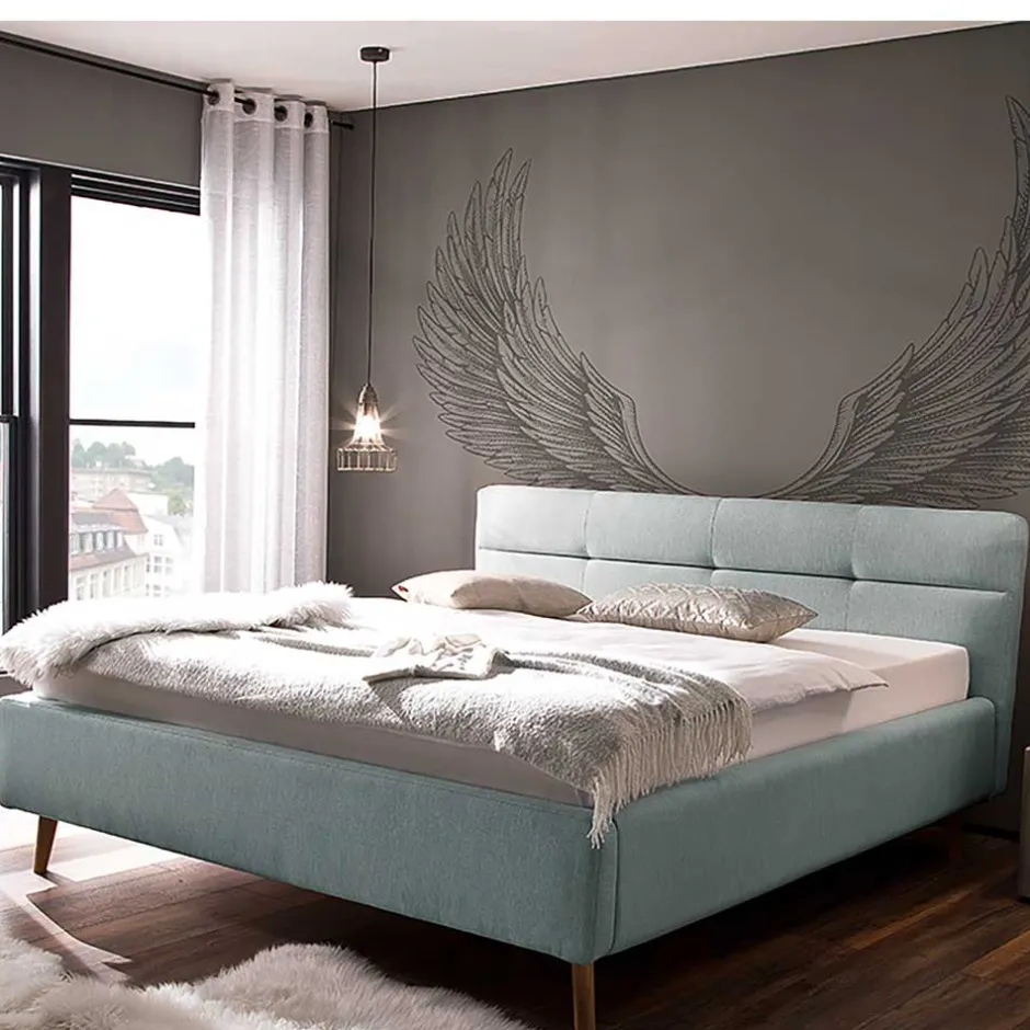 - Traumhaftes Polsterbett in Hellblau und Eichefarben