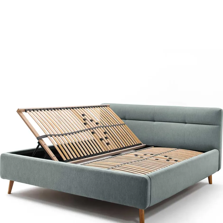 Das Polsterbett „Armele“ wird mit zwei unverstellbaren Lattenrosten geliefert. Jeder Lattenrost verfügt über 28 starre Leisten und ist in Bezug auf den Härtegrad verstellbar. So können Sie den Schlafkomfort nach Ihren persönlichen Vorlieben anpassen. Das Bett bietet eine maximale Belastbarkeit von 240 kg.