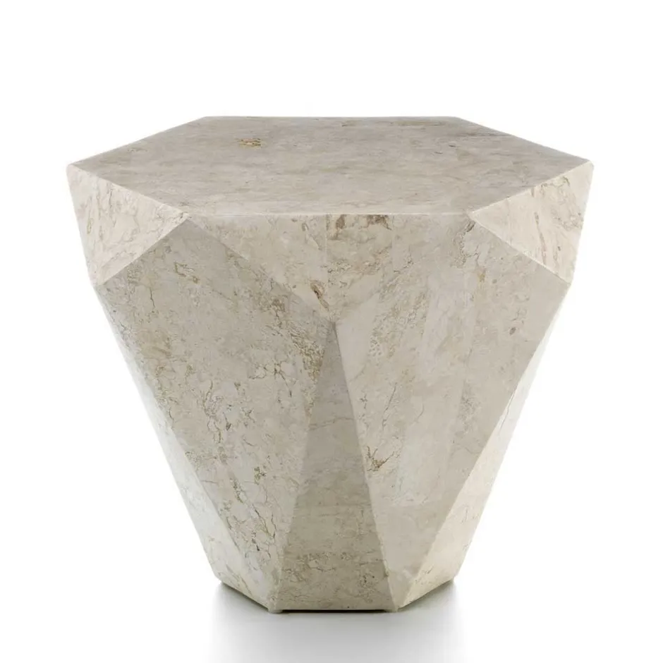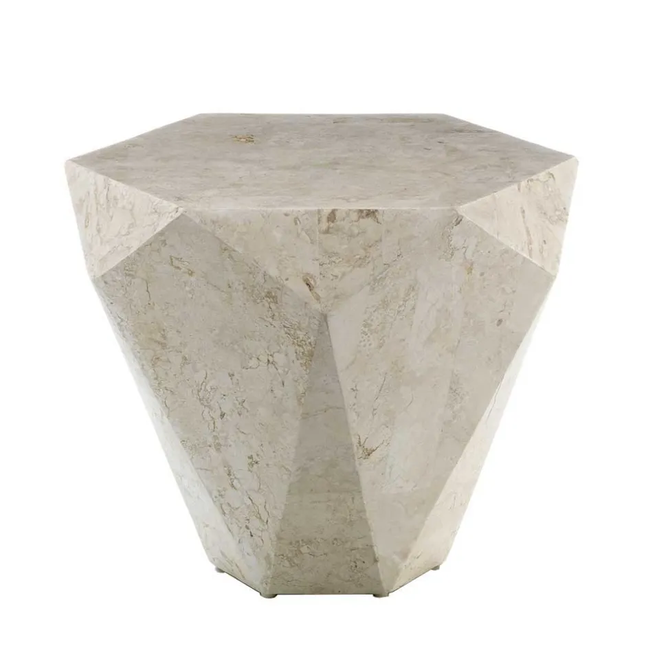 Bei der Fertigung des Couchtisches „Jevellon“ setzen wir auf die Kombination aus Stabilität und Schönheit. Das Gestell, gefertigt aus stabil verleimtem Sperrholz, bildet die solide Basis dieses Kunstwerks. Doch der wahre Hingucker ist der cremefarbene Fossilstein, der in akribischer Handarbeit geschliffen und in Mosaik-Optik am Gestell befestigt wird. Jedes Stück ist ein Unikat, dessen individuelle Marmorierung und glatte, versiegelte Oberfläche für eine sehr exklusive Wirkung sorgen.