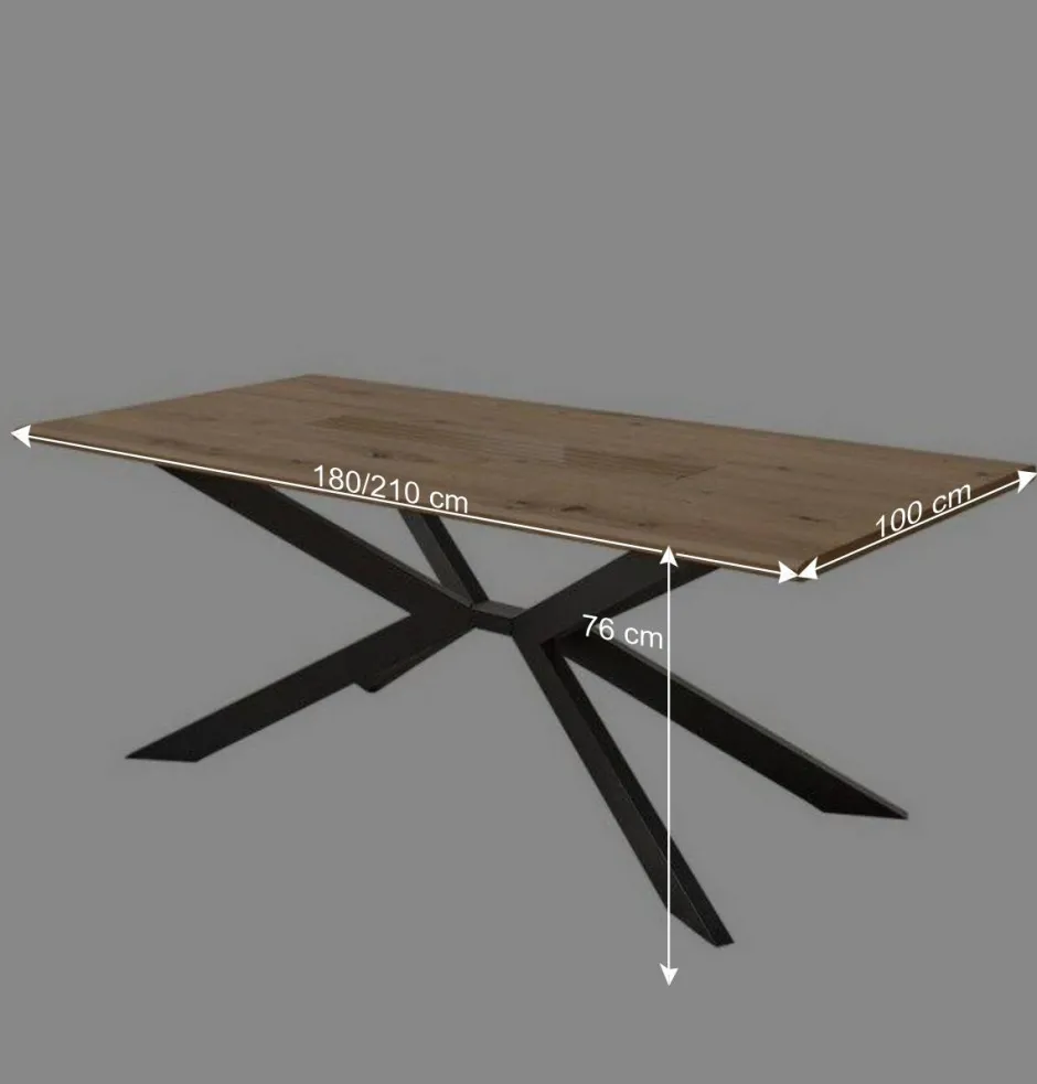 Das Tischgestell besteht aus matt schwarz pulverbeschichtetem Metall. Diese Pulverbeschichtung bietet nicht nur einen eleganten, modernen Look, sondern schützt das Metall auch vor Rost und Abnutzung. Das Spidergestell des Tisches verteilt das Gewicht gleichmäßig und sorgt für eine extrem stabile Basis. Diese Konstruktion ermöglicht eine maximale Belastbarkeit von bis zu 100 kg und gewährleistet, dass Ihr Tisch sicher und fest steht, unabhängig davon, was Sie darauf platzieren.