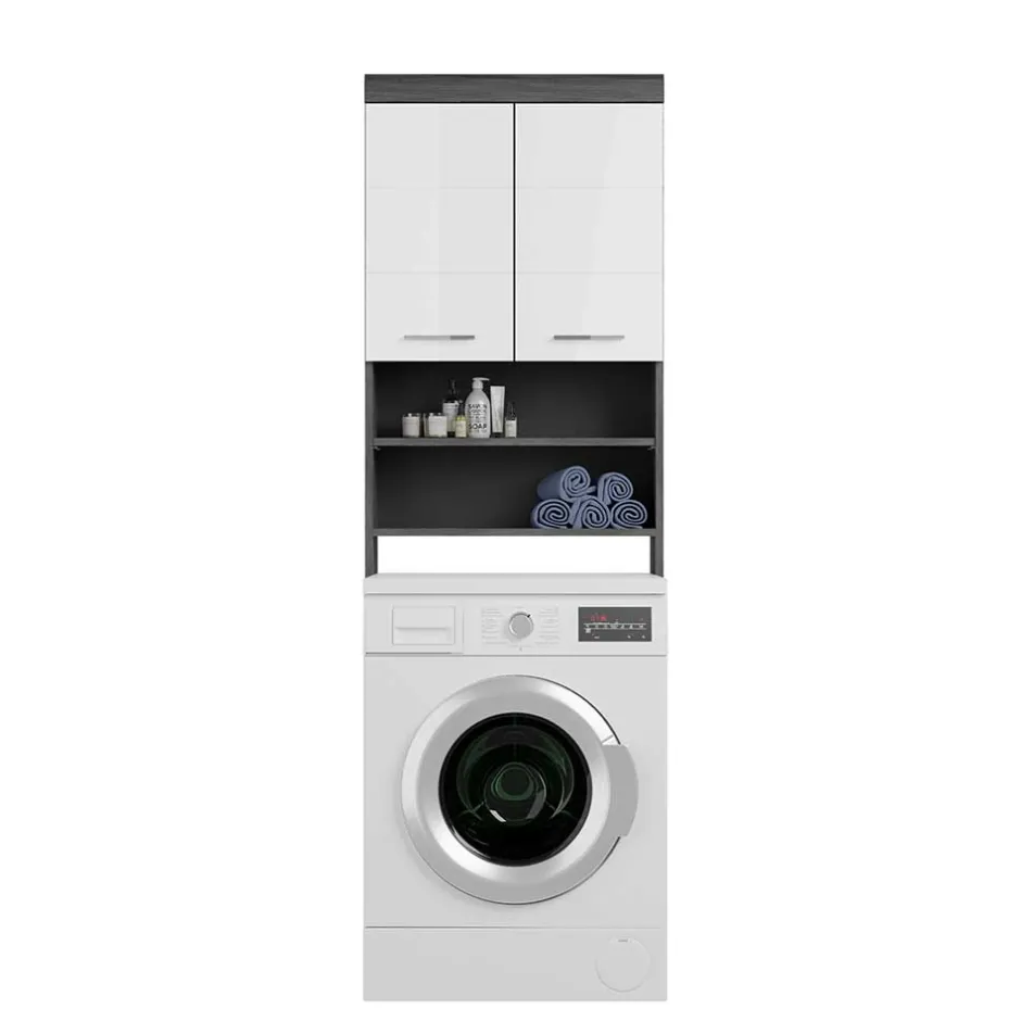 - Praktischer Waschmaschinenschrank in Weiß und Rauchgrau