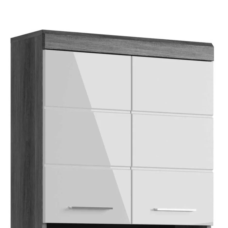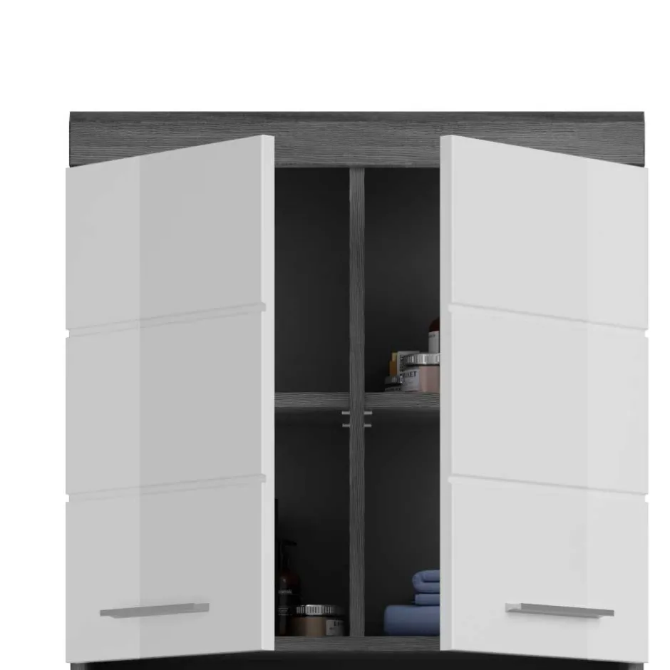 In einer zeitgemäßen Kombination aus klassischem Weiß und edlem Rauchgrau bringt dieser Waschmaschinenschrank frischen Wind in jedes Bad oder jeden Hauswirtschaftsraum. Die Fronten sind hochglänzend gearbeitet und mit einem eleganten Rillendekor versehen – feine, vertikale Linien, die dem Möbelstück Struktur und Tiefe verleihen. In Verbindung mit der ruhigen Holzoptik in Rauchgrau ergibt sich ein harmonisches Gesamtbild, das sowohl in moderne als auch klassische Einrichtungen passt.