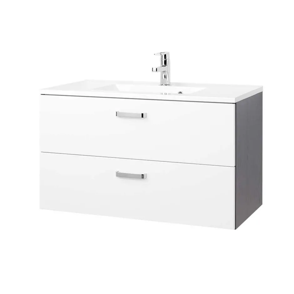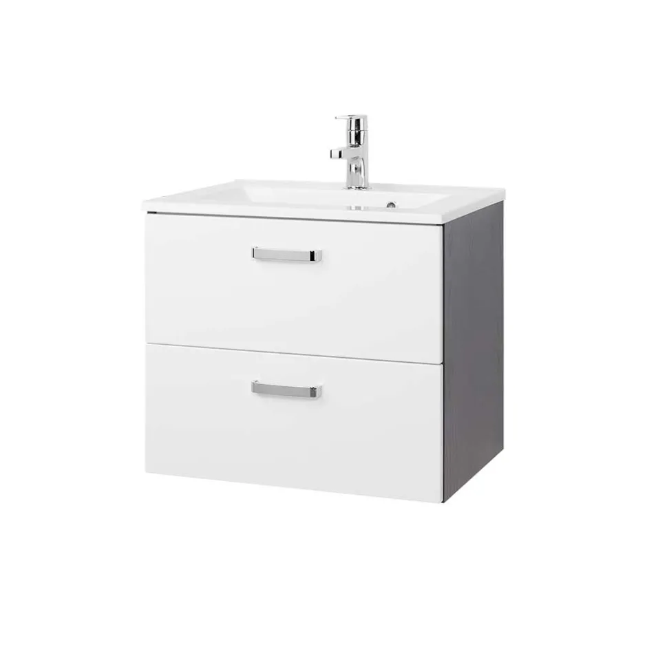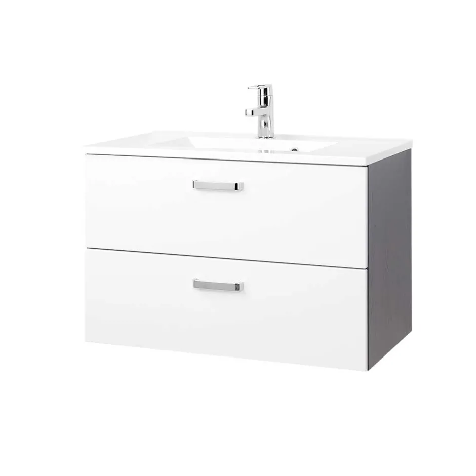 Elegante Metallgriffe setzen optische Akzente und runden das moderne Erscheinungsbild ab. Durch die praktische Wandmontage entsteht ein freischwebender Look, der nicht nur modern wirkt, sondern auch das Reinigen des Bodens erleichtert. Der Waschtisch wird zerlegt geliefert – eine leicht verständliche Montageanleitung liegt selbstverständlich bei.