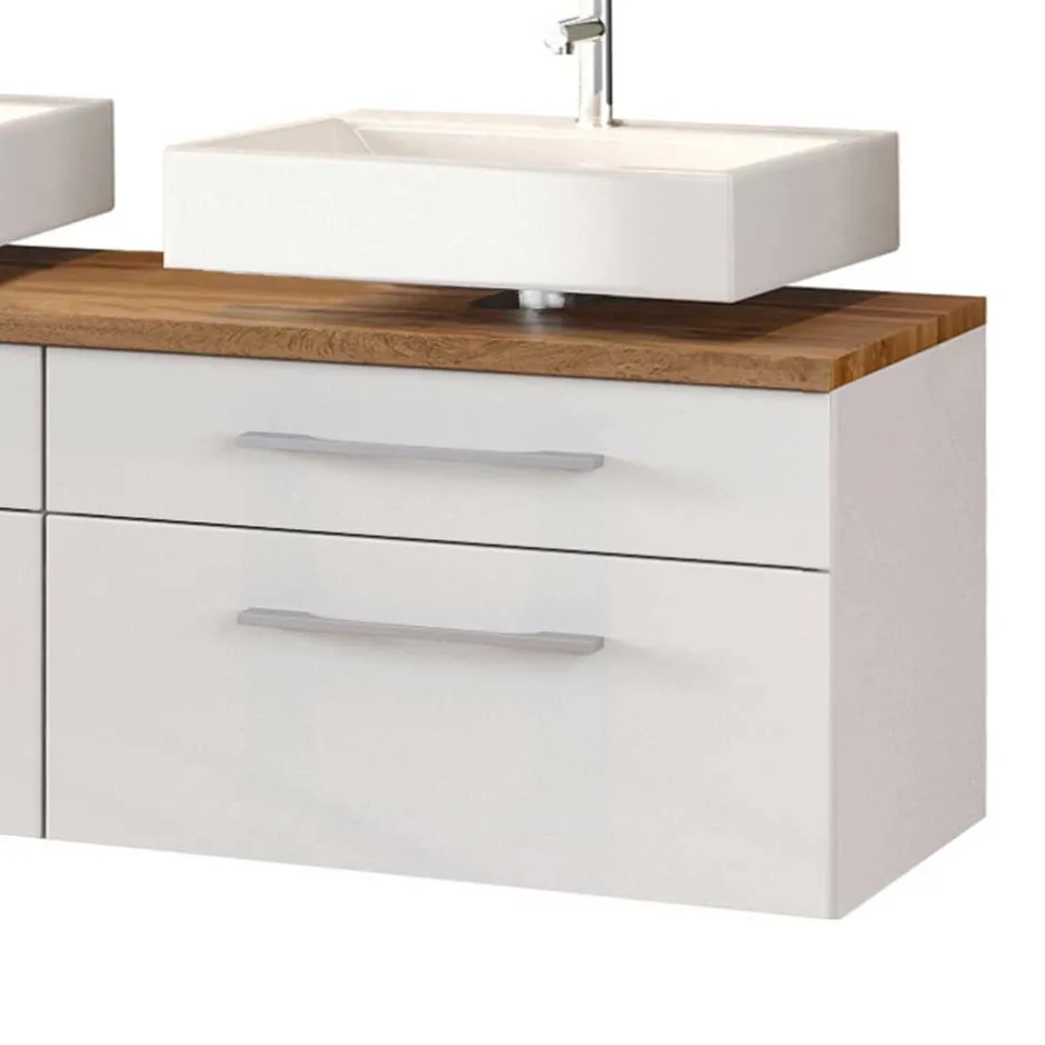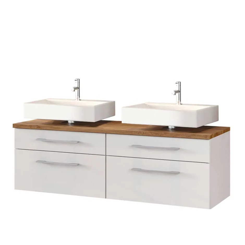 - Hochwertiges Badmöbel Set in Weiß und Wildeichefarben