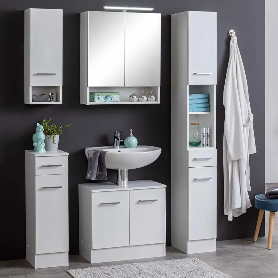 Frische, Klarheit und zeitgemäße Eleganz verschmelzen im Bad-Unterschrank „Skiranov“ zu einem Gesamtkunstwerk moderner Wohnkultur. Sanfte Linien und ein puristisches Erscheinungsbild schaffen ein Gefühl von Weite und Ruhe. Das strahlende Weiß von Front, Korpus und Rückwand verleiht Ihrem Badezimmer ein lichtdurchflutetes, freundliches Ambiente und lässt selbst kleinere Räume größer wirken. Der dezente Glanz der Oberflächen wirkt edel und zeitlos zugleich – ein Design, das nie aus der Mode kommt und sich sowohl mit modernen Armaturen als auch mit klassischen Stilelementen harmonisch kombinieren lässt. Dank seiner kompakten Maße von 25 cm Breite, 84 cm Höhe und 35 cm Tiefe findet dieser Unterschrank selbst in schmalen Nischen seinen Platz und bietet dennoch großzügigen Stauraum.