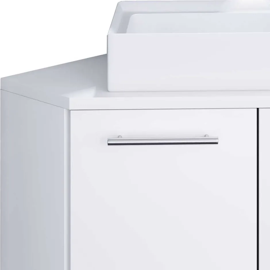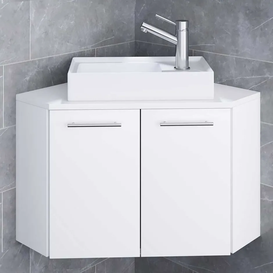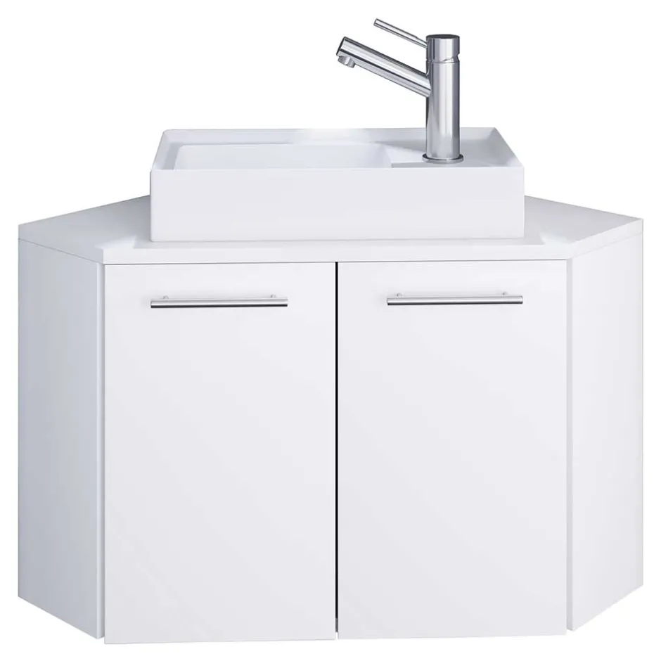 - Praktischer Eck-Waschtisch in Weiß