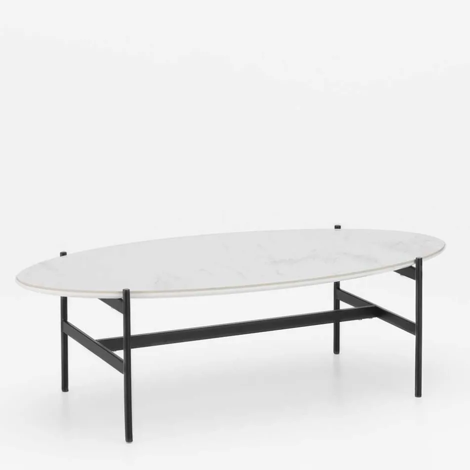 Wohnen 110×50 Wohnzimmertisch in Oval Marmor Optik – Inn
