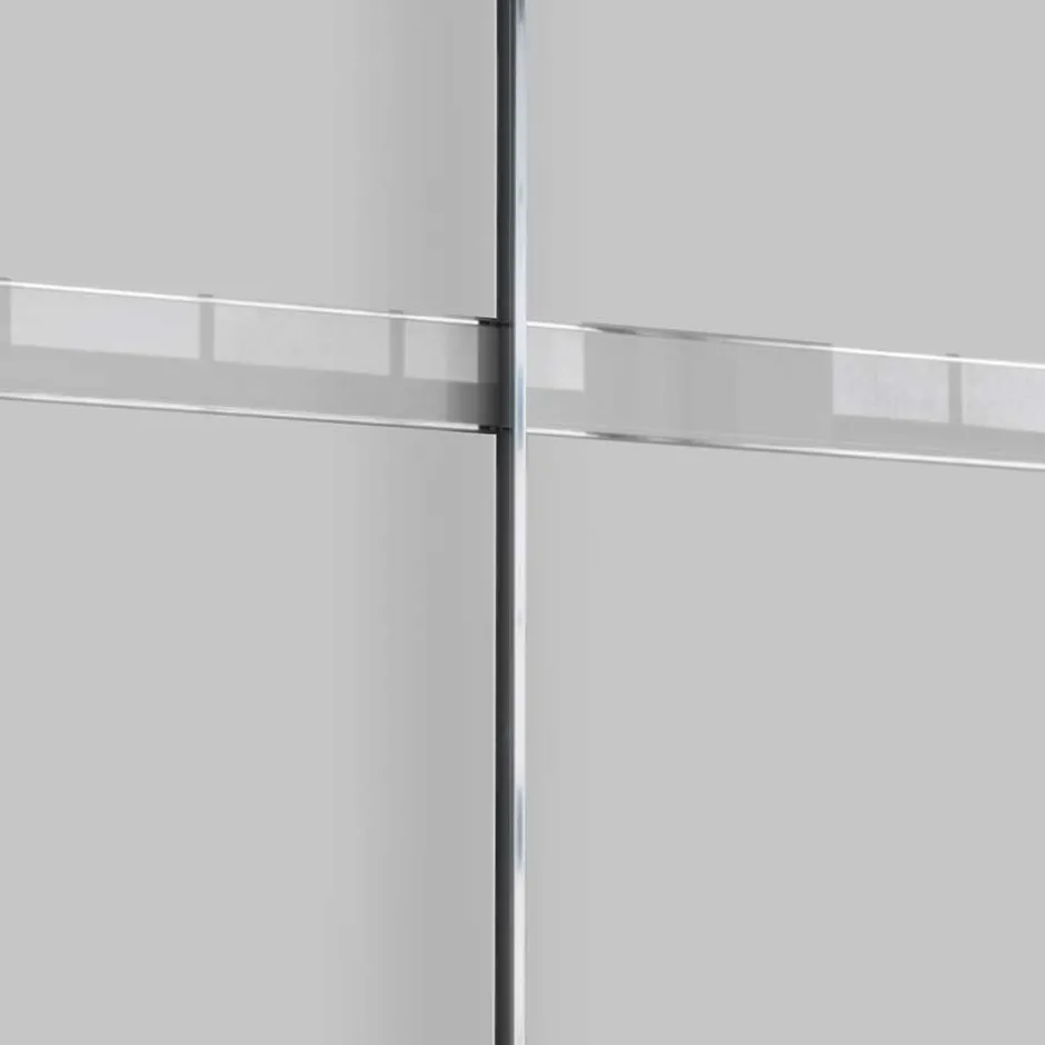 Die schicke Griffleisten und Aufleistungen aus Metall in Chromfarben runden das moderne Design des Schwebetürenschranks „Elisabeth“ ab und machen die Bedienung der Türen zum Kinderspiel. Sie unterstreichen den hochwertigen Charakter des Schranks und setzen dezente, aber wirkungsvolle Akzente.