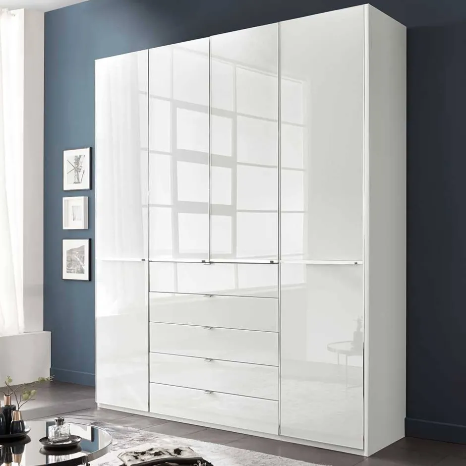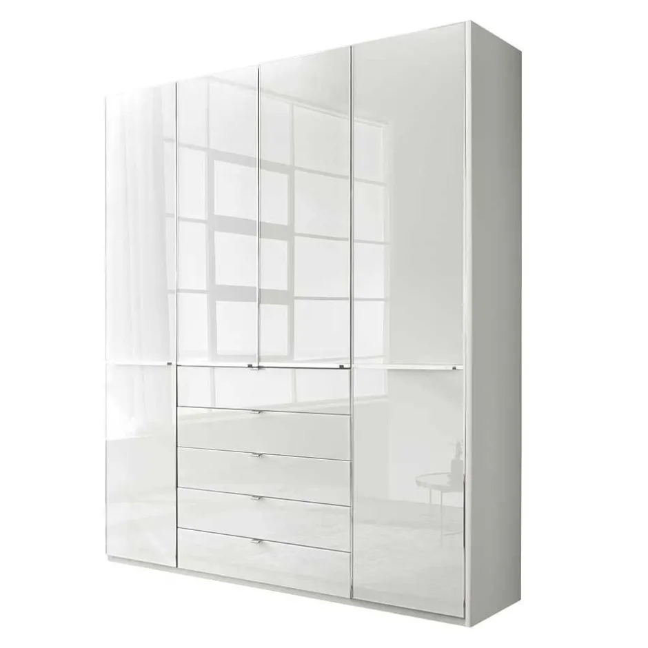 Der 4-türige Schlafzimmerschrank „Rocca“ bringt pure Schlichtheit und zeitlose Eleganz in Ihr Schlafzimmer, Jugendzimmer oder Gästezimmer. Mit seiner weißen Glasfront und dem weißen Korpus fügt sich der „Rocca“ nahtlos in jede moderne Einrichtung ein und setzt dabei stilvolle Akzente.
