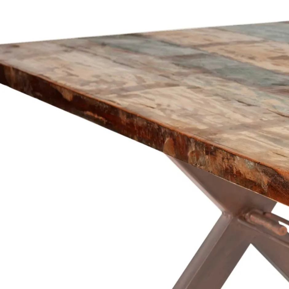Sheesham Holz steht nicht nur für seine Robustheit und den Widerstand gegen Abnutzung, sondern auch für seine Umweltfreundlichkeit, da es aus nachhaltigen Quellen stammt. Die Kombination mit einem X-Fußgestell aus antikem, braunem Eisen fügt eine zusätzliche Dimension der Stärke und des industriellen Charmes hinzu. Die einstellbare Weite des Tisches durch ein innovatives Gewindesystem im Gestell sorgt zudem für Flexibilität in jedem Essbereich, ganz gleich ob Sie mehr Gäste erwarten oder einfach mehr Raum benötigen.
