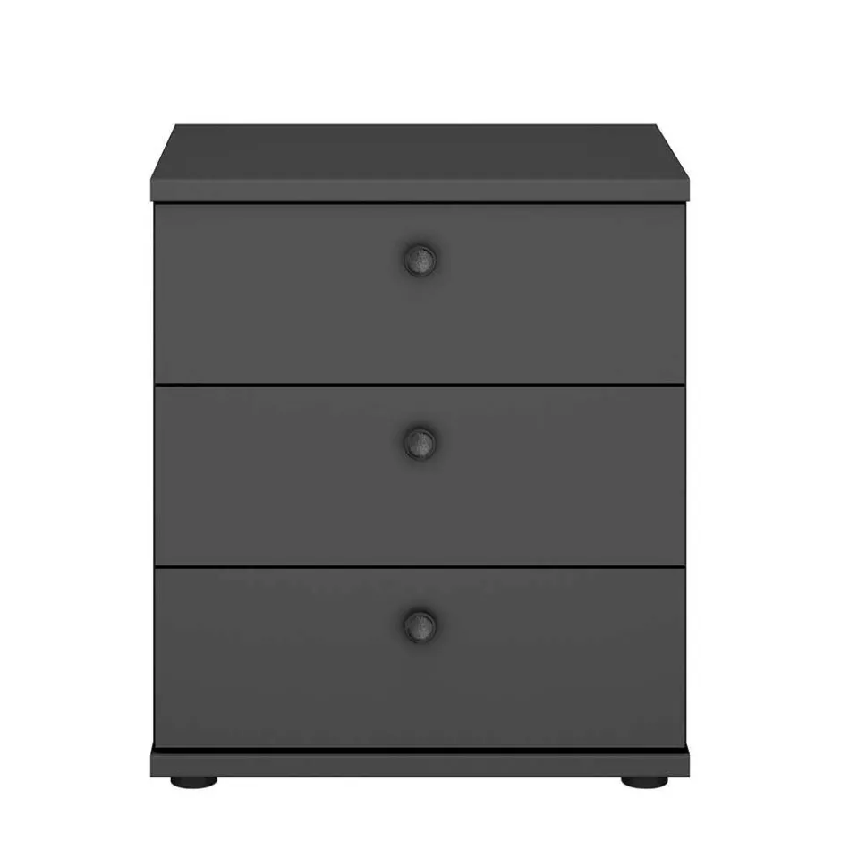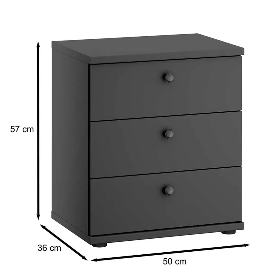 Hergestellt aus robuster Spanplatte, verspricht die Nachtkommode eine hohe Widerstandsfähigkeit und lange Lebensdauer. Die pflegeleichten, folierten Oberflächen in Dunkelgrau sind nicht nur ästhetisch ansprechend, sondern auch kinderleicht zu reinigen. Dies bedeutet, dass kleinere Verschmutzungen problemlos abgewischt werden können, und die Kommode selbst nach Jahren noch wie neu aussieht.