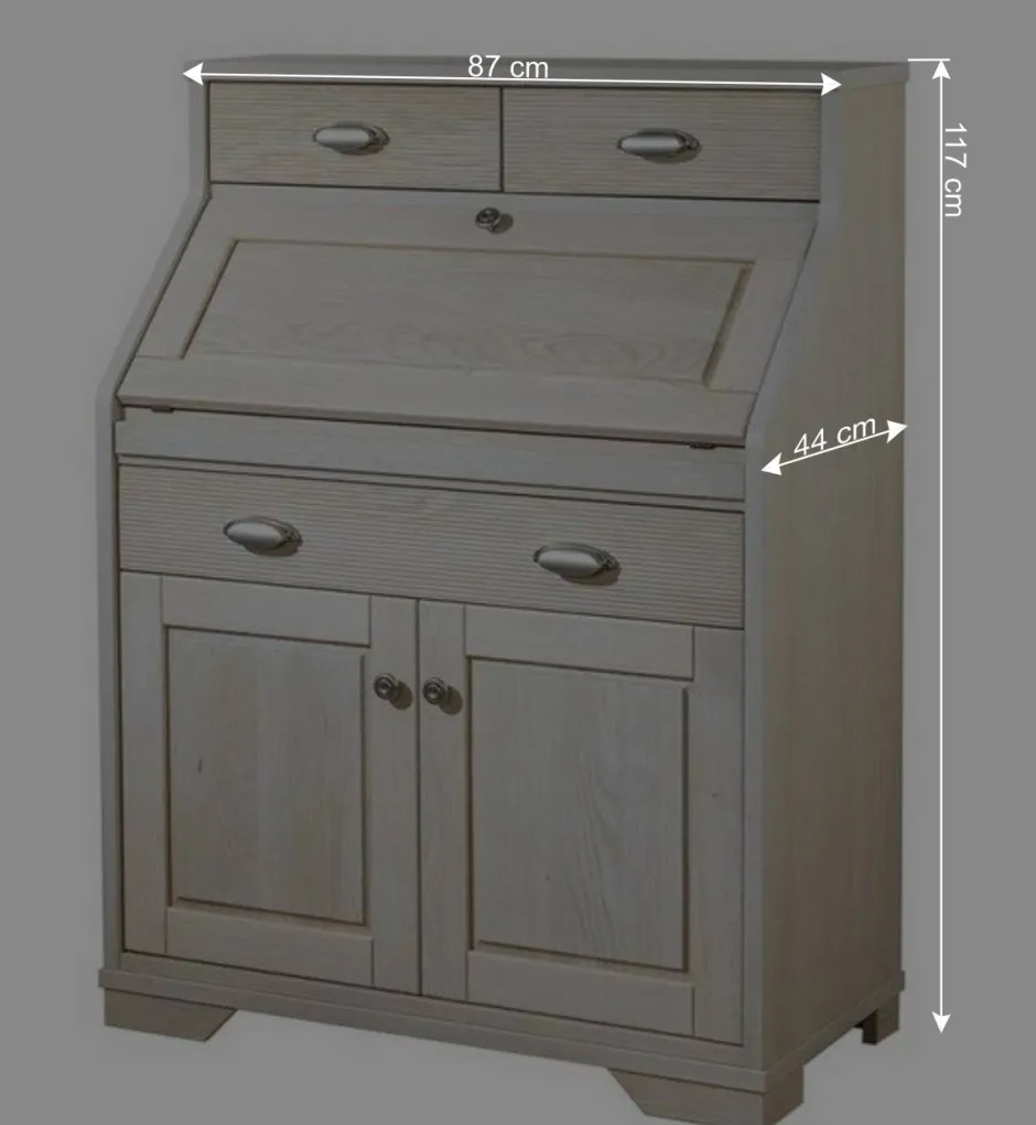 Der Sekretär „Larioja“ zeichnet sich durch seinen formschönen Landhaus-Look aus, der jede Einrichtung mit einer Prise ländlicher Romantik bereichert. Der Stil zeugt von -einer leichten, luftigen Gestaltung mit sanften Farben und natürlichen Materialien, ideal, um eine warme, einladende Atmosphäre zu schaffen.