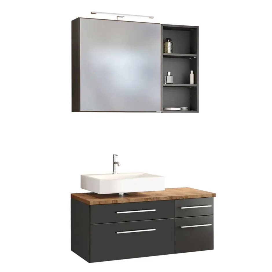- Angesagtes Badmöbel Set in dunkel Grau und Wildeichefarben