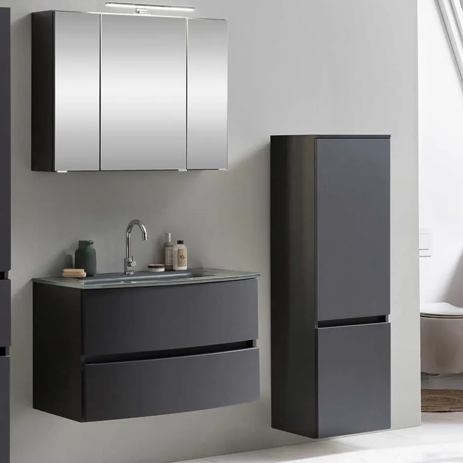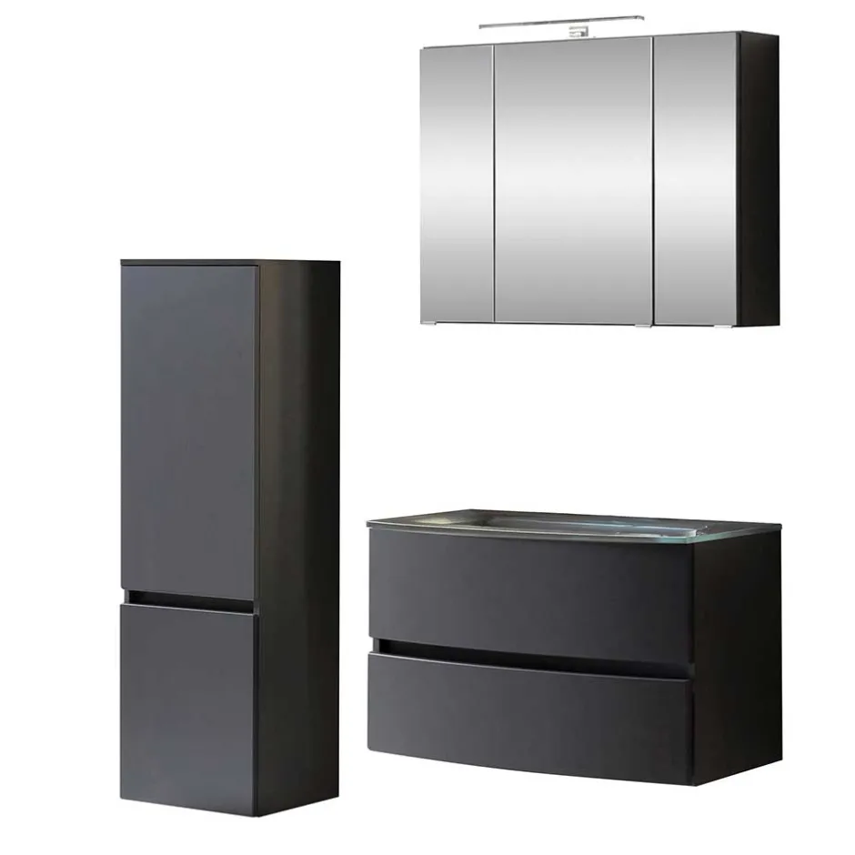 Wohnen Badeinrichtung Set in Dunkelgrau – Natarivos (dreiteilig)
