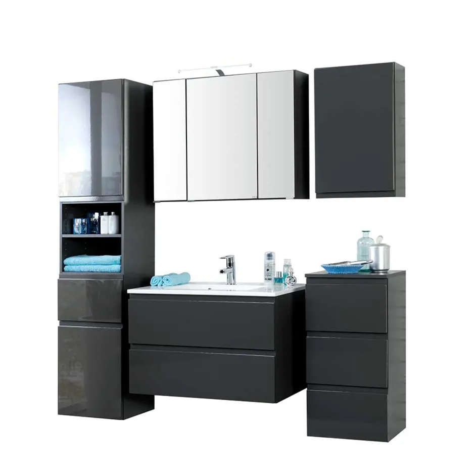 - Exklusives Badmöbel Set in Anthrazit Hochglanz