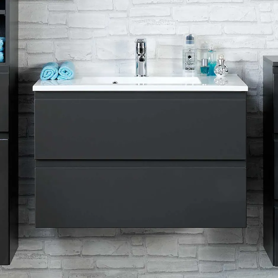 Das Design von „Blaxin“ begeistert mit seiner schlichten, klaren Linienführung und seiner reduzierten Formensprache. Dieses puristische Gestaltungskonzept bringt Ruhe und Ordnung in Ihr Badezimmer und wirkt gleichzeitig modern und elegant. Die stilvolle Farbgebung in Anthrazit Hochglanz für die Fronten und einem matten Korpus unterstreicht den exklusiven Charakter dieser Möbelserie. Anthrazit sorgt für eine edle Optik, während der Hochglanz-Effekt die Fronten besonders hochwertig und pflegeleicht erscheinen lässt.