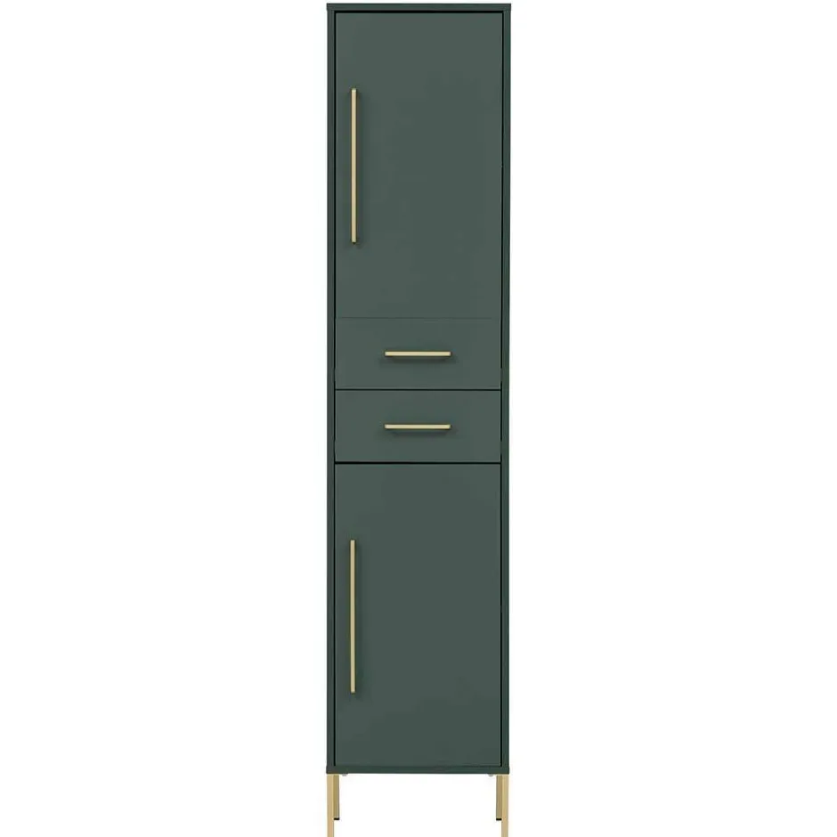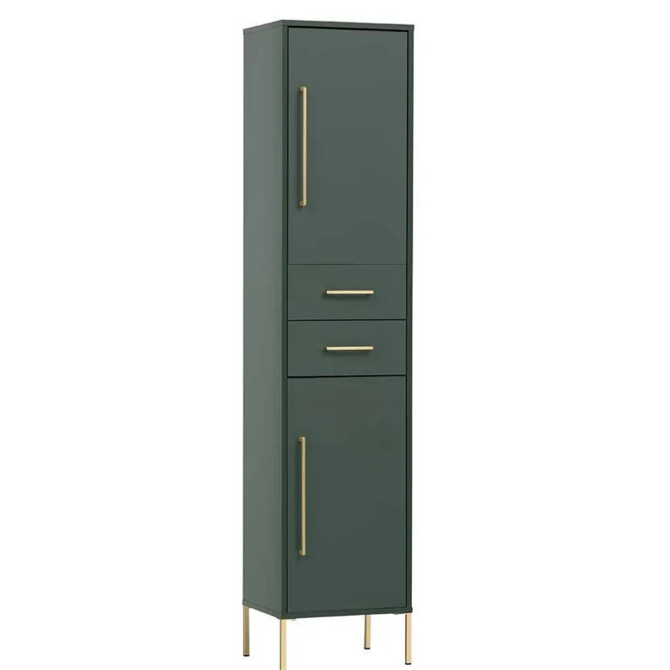 - Elegante Badmöbel in Dunkelgrün und Goldfarben