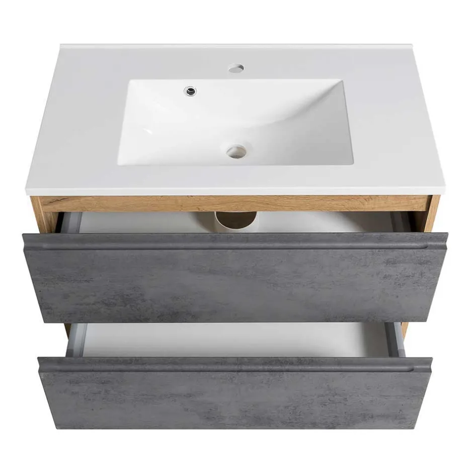 - Schicke Badmöbel in Betongrau und Wildeichefarben