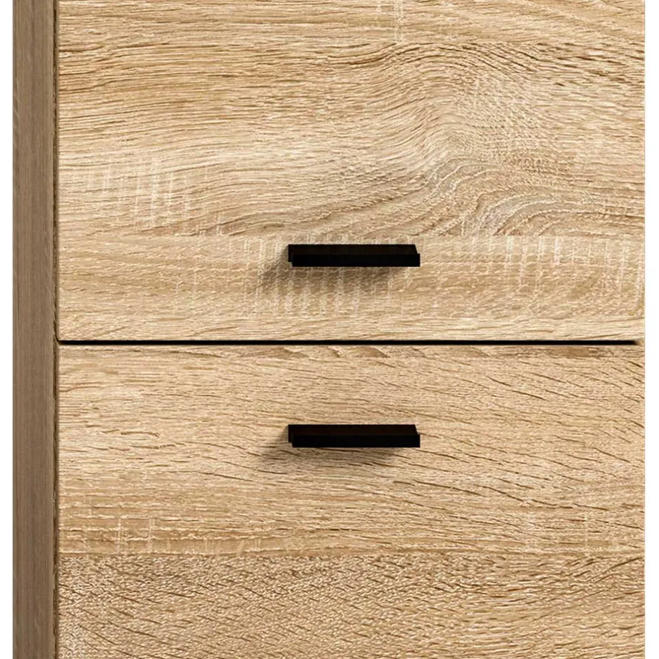 Gefertigt aus strapazierfähiger Spanplatte und hochwertigem Spiegelglas, überzeugen die Möbel durch ihre Langlebigkeit und Pflegeleichtigkeit. Die melaminbeschichteten Oberflächen in Sonoma Eiche Holzoptik sind nicht nur optisch ansprechend, sondern auch einfach zu reinigen. Schwarze Griffleisten aus Kunststoff setzen stilvolle Akzente und unterstreichen das moderne Design. Dank der hängenden oder stehenden Montageoptionen und der beigelegten Kippsicherungen können Sie das Set flexibel an Ihre Bedürfnisse anpassen.