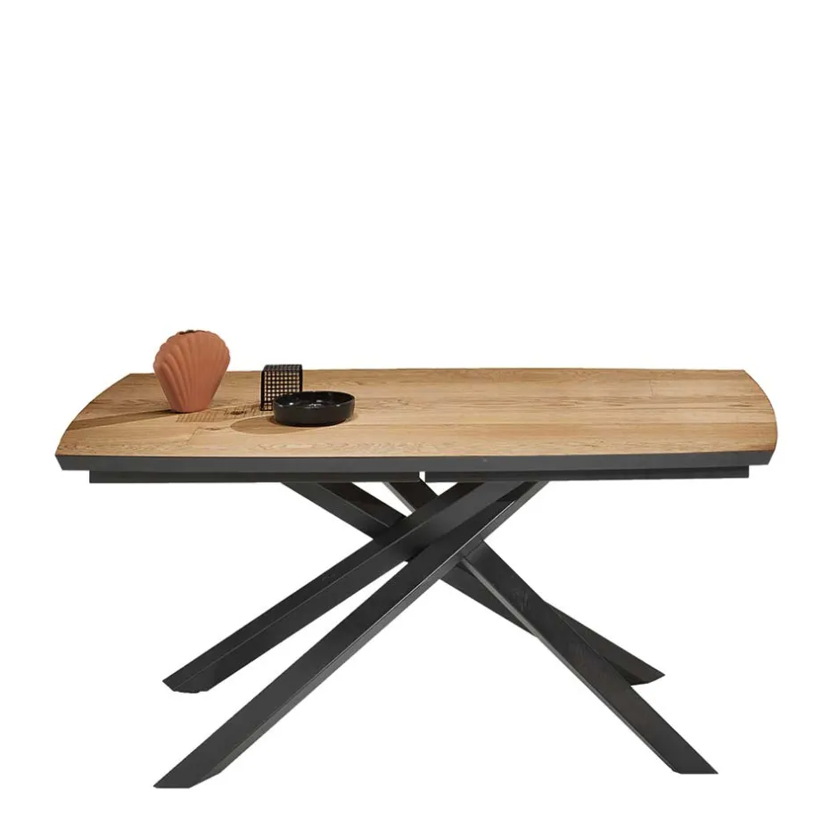 Ein echter Hingucker in jedem Raum: Der Esstisch „Autonum“ vereint gekonnt den robusten Charme des Industriestils mit der kühlen Raffinesse des Loft-Designs. Sein einzigartiger Look und die durchdachten Details machen ihn zur perfekten Wahl für moderne und stilbewusste Haushalte. Mit seinem dekorativen Mikadogestell aus schwarzem Metall und der elegant furnierten Tischplatte bringt „Autonum“ eine unverwechselbare Atmosphäre in Ihr Zuhause.