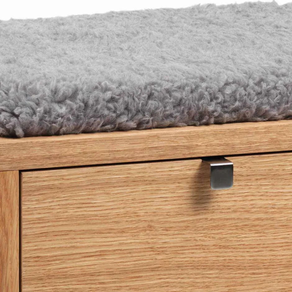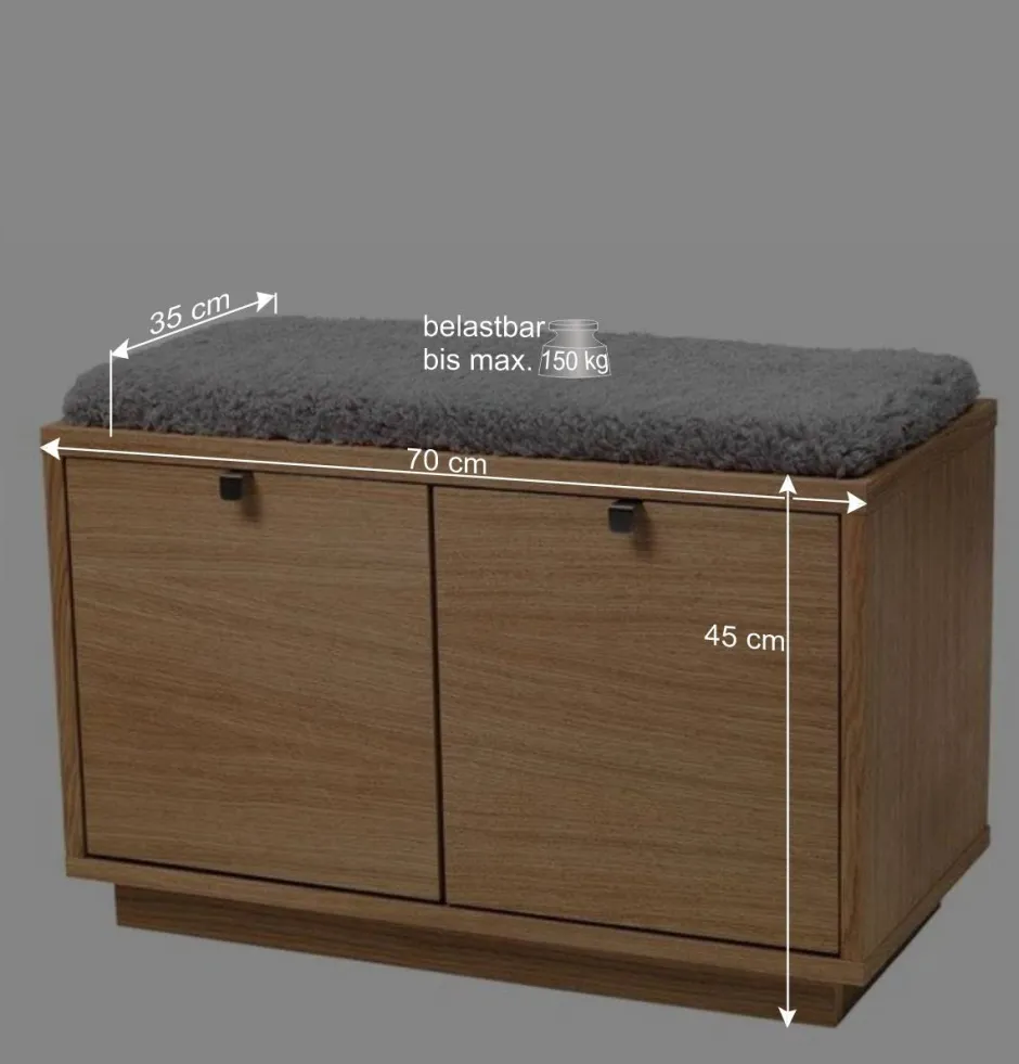 Die Polsterauflage der Garderobenbank „Helvana“ bietet nicht nur eine bequeme Sitzgelegenheit, sondern auch ein unvergleichliches Gefühl von Luxus. Der hochwertige Schaumstoff im Inneren der Polsterung gewährleistet einen optimalen Sitzkomfort, während der weiche Plüschbezug aus 60 % Polyester und 40 % Polyacryl in Grau für ein angenehmes und gemütliches Gefühl sorgt. Diese Materialien sind nicht nur äußerst strapazierfähig, sondern auch leicht zu reinigen, was die Pflege dieser Bank zum Kinderspiel macht.