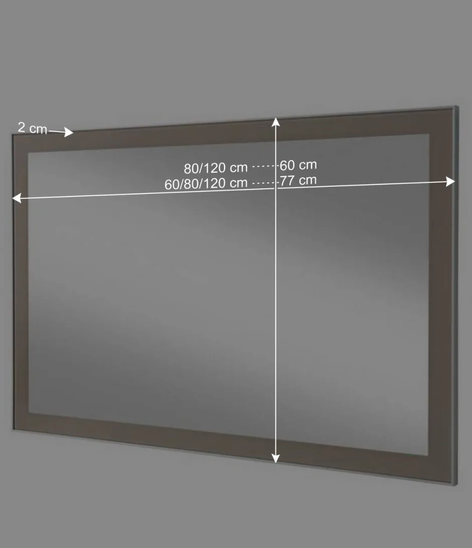 Mit Abmessungen, die nach Wahl variieren – von 60 cm Höhe bis zu einer Breite von 120 cm – integriert sich dieser Spiegel perfekt in verschiedene Raumgrößen und Stilrichtungen. Die Möglichkeit, den Spiegel sowohl längs als auch quer zu montieren, bietet zusätzliche Flexibilität bei der Gestaltung Ihrer Wohnräume.