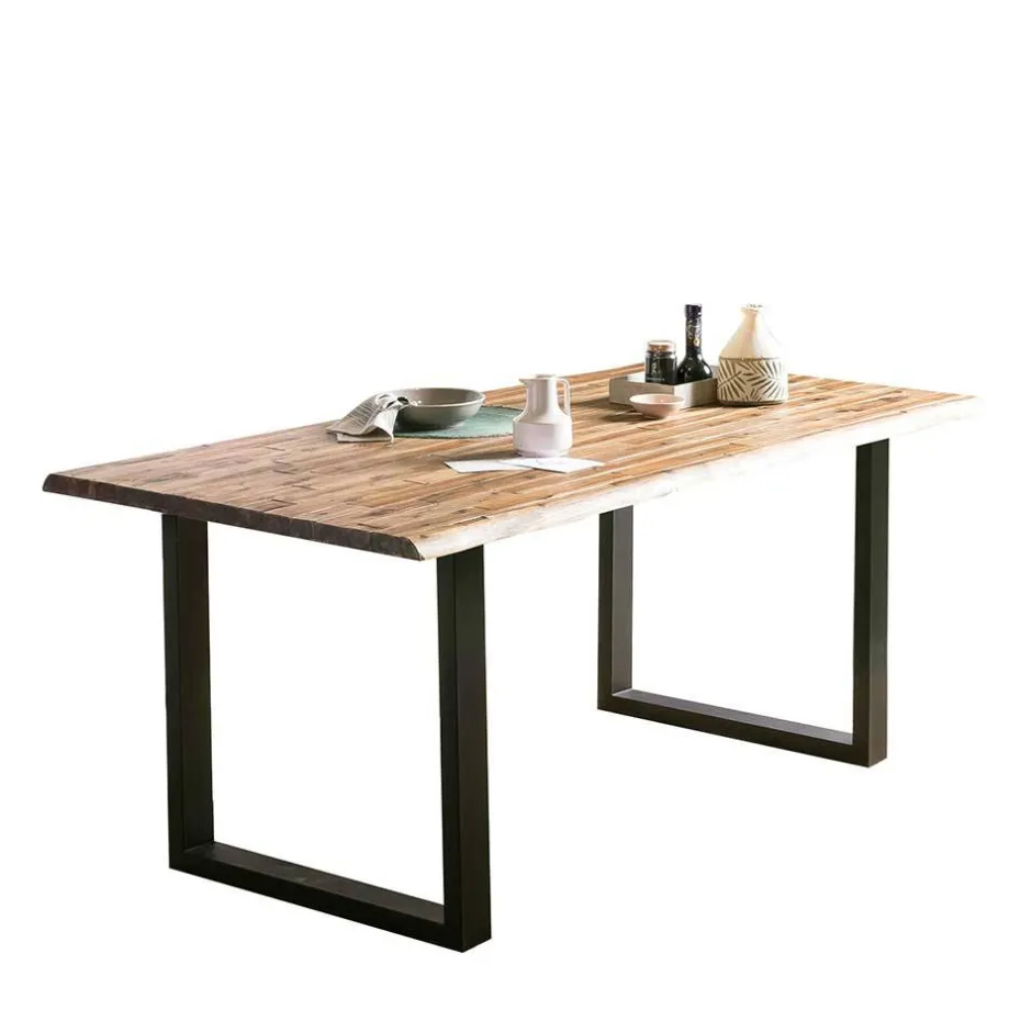 Das Metall-Bügelgestell trägt nicht nur zum markanten Look bei, sondern gewährleistet auch höchste Standfestigkeit. Durch seine durchdachte Form bietet es viel Beinfreiheit und sorgt dafür, dass der Tisch stabil und sicher steht – selbst bei intensiver Nutzung. Je nach Platzbedarf kann zwischen zwei Breiten gewählt werden: 160 cm oder 180 cm – ideal für Familien, Wohngemeinschaften oder Gastgeber mit Stil.